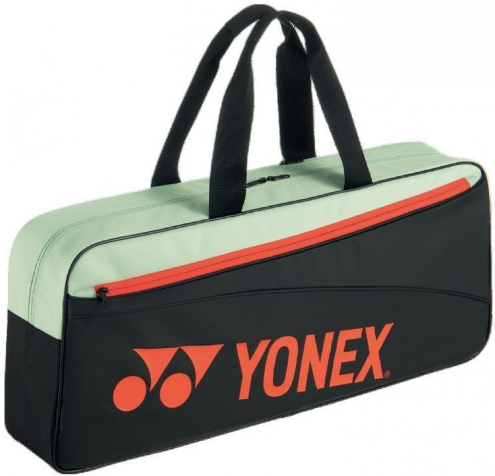 Tenisová taška Yonex Team Tournament Bag - černá/zelená Vyrobena z vysoce kvalitních materiálů. Má jednu velkou hlavní přihrádku a jednu menší kapsu na příslušenství. Všechny jsou uzavíratelné na zipy.Samostatná komora na obuv nebo mokré oblečení.Dvě rukojeti pro přenášení, ale bez ramenních popruhů a bez funkce batohu.