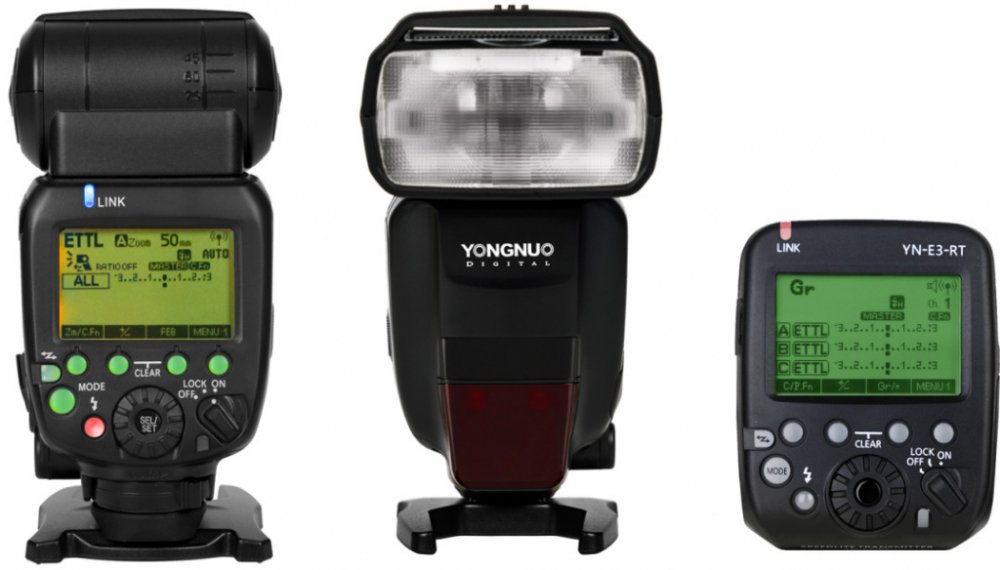 Nová vylepšená verze externího blesku YN600EX-RT II je přímý konkurent originálního blesku Canon Speedlite 600EX(II)-RT. YN600EX-RT disponuje Canon TTL logikou, vysokorychlostní synchronizací HSS, možností bezdrátového ovládání/odpalování pomocí speciální řídící jednotky YN-E3-RT, která je součástí tohoto setu a přehledným podsvíceným displejem.