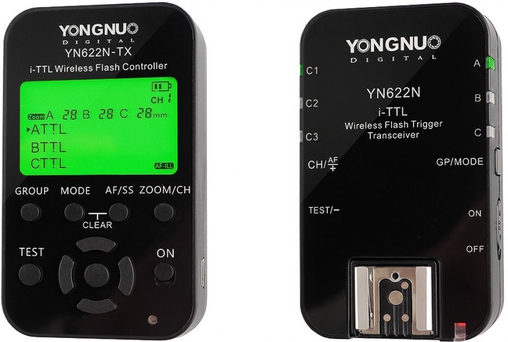 Yongnuo YN622C-Kit. Jedná se o sadu sestávající z rádiového ovladače Yongnuo 622C-TX TTL a spouště YN-622C.Yongnuo 622C-TX je 2,4GHz bezdrátový rádiový ovladač pro plné ovládání blesků i-TTL připojených ke spoušti YN-622C. Kódovaný přenos zajišťuje efektivní dosah bez rušení až 100 m. Jednotka je vybavena displejem LCD pro pohodlné změny parametrů. Kromě toho je vybavena asistenční diodou pro automatické zaostřování.Yongnuo YN-622C je jednou z nejpokročilejších rádiových spouští pro systémová světla (podporující vzdálené funkce TTL) a studiová světla. Umožňuje dálkové ovládání jednotlivých světel nebo skupin světel. Díky rozsahu 2,4 GHz dosahuje provozní dosah zařízení až 100 m.Rádiový ovladač může pracovat v 7 přenosových kanálech, blesky lze rozdělit do 3 nezávisle ovládaných skupin. To umožní pohodlnou práci i s velkým počtem záblesků. Zařízení se montuje přímo na hot shoe patici fotoaparátu nebo synchronizační kabel a je navíc vybaveno zásuvkou pro PC. Je napájen dvěma bateriemi AA nebo dobíjecími bateriemi. Yongnuo 622C-TX umožňuje práci blesku nebo skupiny blesků v automatickém režimu i-TTL, v režimu Super Sync nebo v manuálním režimu. Umožňuje nastavení výkonu záblesku, korekci EV a přiblížení záblesku, spouštění záblesku s přední a zadní clonou a podporuje modelovací záblesk. Řídicí jednotka je vybavena konektorem USB pro aktualizaci interního softwaru (ke stažení na webových stránkách výrobce).Rádiová spoušť YN622C bude díky své plné funkčnosti skvěle fungovat v rukou profesionála. Díky jednoduchému ovládání uspokojí i amatéry. Výjimečná použitelnost přístroje najde své uplatnění v pokročilém fotografickém studiu, při reportážních nebo venkovních sezeních.Každý fotoaparát YN-622 může pracovat jako vysílač i přijímač. Má pohodlné ovládací prvky a kontrolky pro snadné ovládání skupin světelných zdrojů. Velkou výhodou je spolehlivost provozu a kvalitní zpracování včetně kovové patice.Sada obsahuje dva přístroje, ale je možné do a pracovat s libovolným počtem přístrojů (pro pokročilejší systémy).Specifikace řídicí jednotky Yongnuo 622C-TX:kompatibilita s Yongnuo YN-622Csynchronizace až 1/250 s (režim Auto FP 1/8000 s)3 skupiny blesků A, B, Cvelký podsvícený displej LCD2,4GHz kódovaný přenos7 kanálůpodpora režimů: i-TTL, Syper Sync, ManuálníYongnuo YN-622C TTL2,4GHz rádiová TTL spoušť pro systém Cacnon E-TTL II / E-TTL2x vysílač-přijímač, dosah až 100 mSpecifikace spouště YN-622C:frekvence: 2,4GHz7 pracovních kanálůnapájení: 2x AA (pro každou jednotku)konektory blesku: PC a hot shoelED dioda asistenta automatického zaostřovánívyhrazení funkce TTL: CanonYN622C funkce spouště:plná podpora E-TTL / E-TTL II pro systém Canon,provoz v režimech TTL, Multi, Manual,bezdrátové ovládání blesku z menu fotoaparátu (pro vybrané modely fotoaparátů Canon),správa záblesků podle skupin a kanálů (3 skupiny, 7 kanálů),spolupráce se systémovými a studiovými blesky (nebo jejich kombinacemi),možnost synchronizace blesku pro velmi krátké časy (až 1/8000 s) v režimu HSS,možnost synchronizace na 1, 2 záclony,podpora blesků FEC, FEB, FEL, zoom, modelování,spouštění pomocí připojení k PC,asistenční dioda automatického zaostřování.