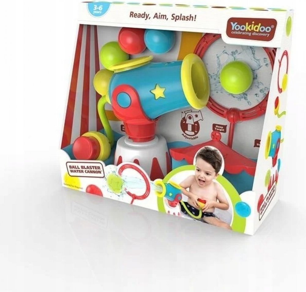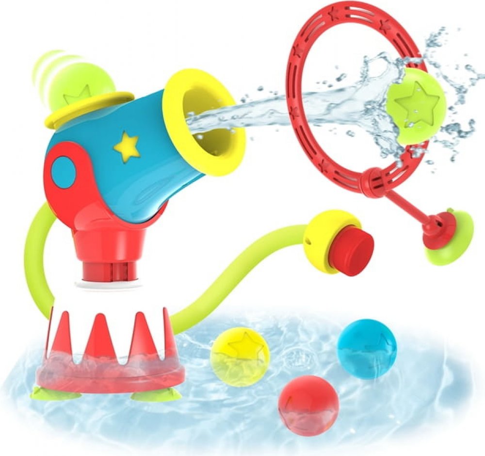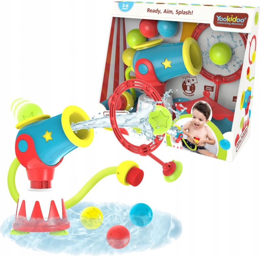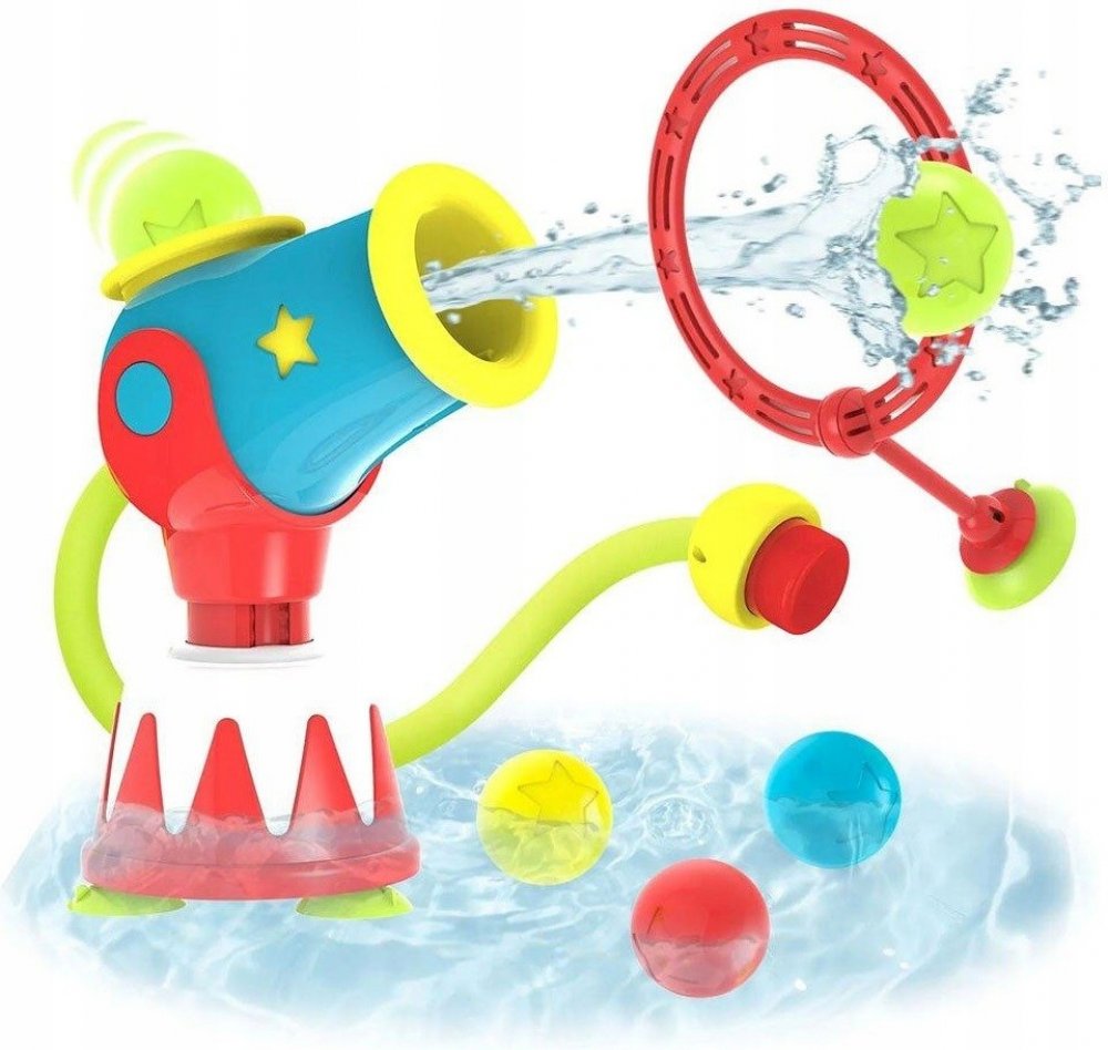 Vodní dělo Úžasná, rozvíjející se hračka do vany! Barevná vodní děla v sadě s obručí a 5 míčky. Děti si procvičují své ručičky stisknutím speciálního tlačítka na dělu, které spustí střelbu. Armatku lze bezpečně připevnit k vaně pomocí přísavek, což zajišťuje její stabilitu při míření. Míčky lze pohodlně uložit do košíku, který se také připevňuje k vaně pomocí přísavky.