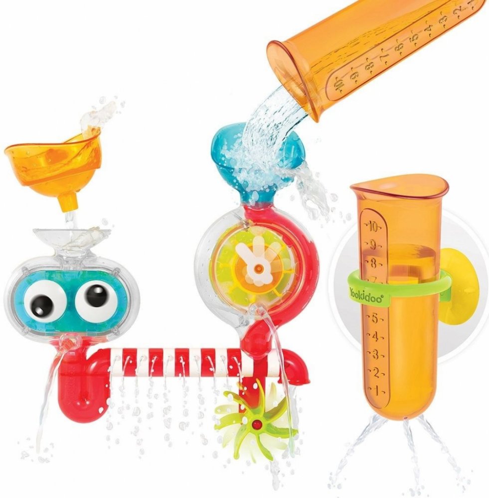 Nalijte zkumavku do trychtýře vodoměru a sledujte, jak se vodoměr točí a 10 vodních trysek stříká z připojovacího potrubí! Je to skvělý způsob, jak vysvětlit dítěti příčinu a následek. Plnění, měření a pozorování - to vše zvyšuje manuální zručnost, jemnou motoriku a koordinaci ruka-oko.