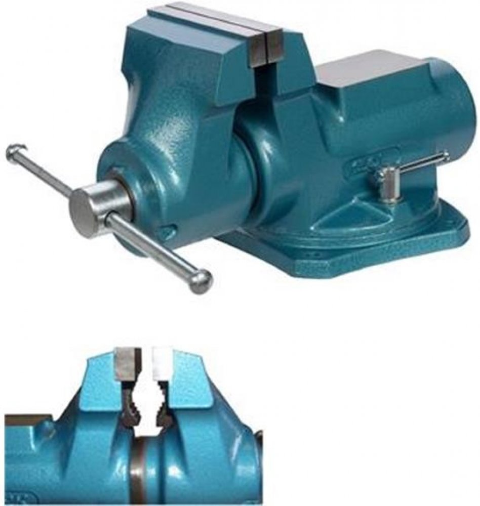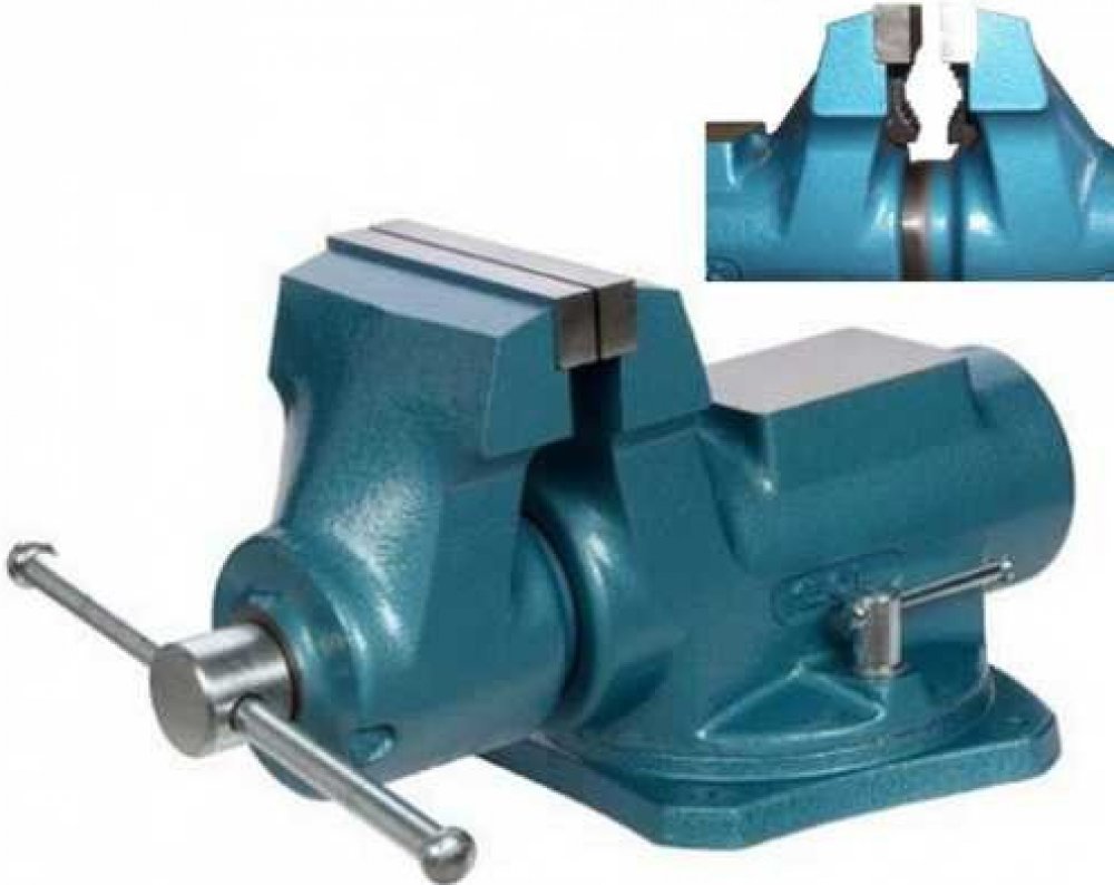 čelisti z vysoce kvalitní oceli kaleny na 45 HRC ± 5 HRC.velká kovadlinaintegrovaná otočná deska ±35° s polohovacími šroubypřesné válcové vedenívratidlo s bezpečnostními koncovkamiupevnění k základové desce kličkamivřeteno a kličky zinkochromátoványs čelistmi na trubky- šířka čelistí 125 mm- délka upnutí 115 mm
