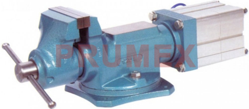 - pneumatický řemeslnický svěrák umožňující otáčení o +/- 35° - čelisti z vysoce kvalitní oceli kaleny na 52-54 HRC. - velká kovadlina - přesné válcové vedení - vratidlo s bezpečnostními koncovkami - Upínací síla: - při tlaku vzduchu 0,6 MPa ....7,5 kN - na přání je možno upínací sílu zvyšovat po 4 kN - zdvih 4 mm - upevnění k základové desce maticemi - s čelistmi na trubky ...