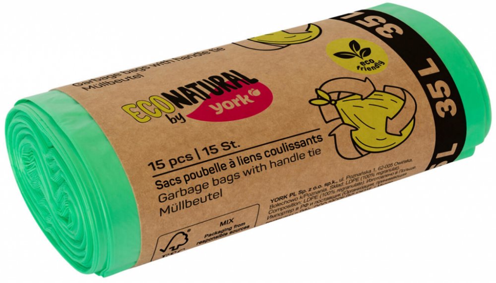 YORK pytle na odpadky ECO s uchy 35l 19,5μm 15ks zelený