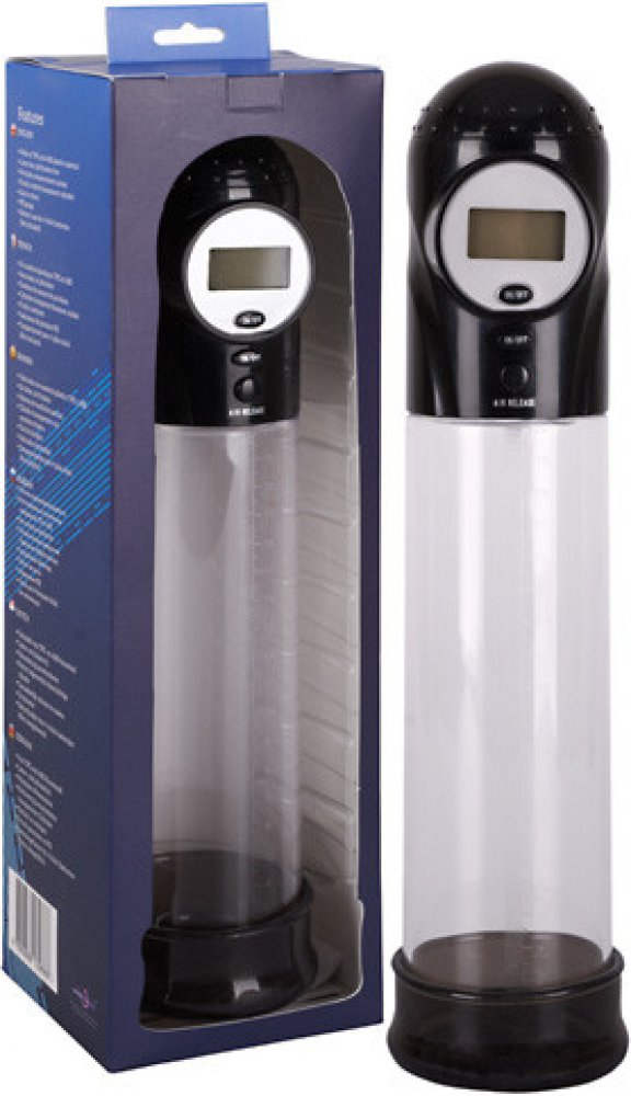 0582891 Automatické penis čerpadlo s průhledným válcem s centimetrovou stupnicí a černým ovládacím panelem s displejem. Tlačítkem ON / OFF na ovládacím panelu bude generovat mocenské vakuum. Na displeji se zobrazí tlak měřený v psi, a je možné zapnout a vypnout nezávisle na čerpadle. funkci tlačítkem Air uvolňováním. Celková délka 31 cm, hloubka vkládání 20 cm, Ø 2,2 až 7,2 cm. Materiál: TPE, ABS, ftalát podle nařízení EU 1907/2006 / ES.