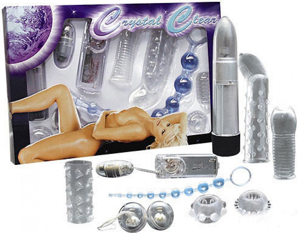 Luxusní sada erotických pomůcek Crystal Clear nejen pro ženy. Najdete v ní vše, co byste mohli potřebovat k milostným hrátkám.