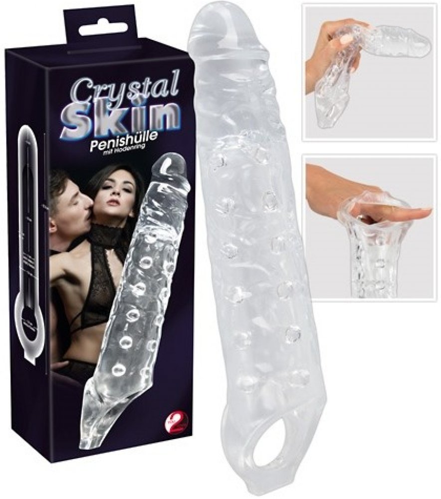 Návlek na penis z priehľadného, mimoriadne elastického, extra mäkkého materiálu. Realistický tvar, stimulačný, mierne žilovitý povrch, foremný žaluď. Vynikajúco udržuje erekciu, cca. o 1 cm predlžuje.