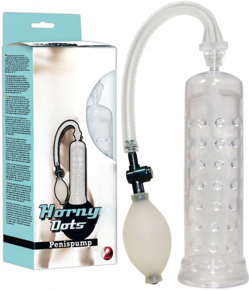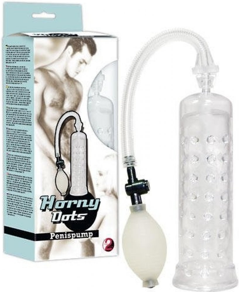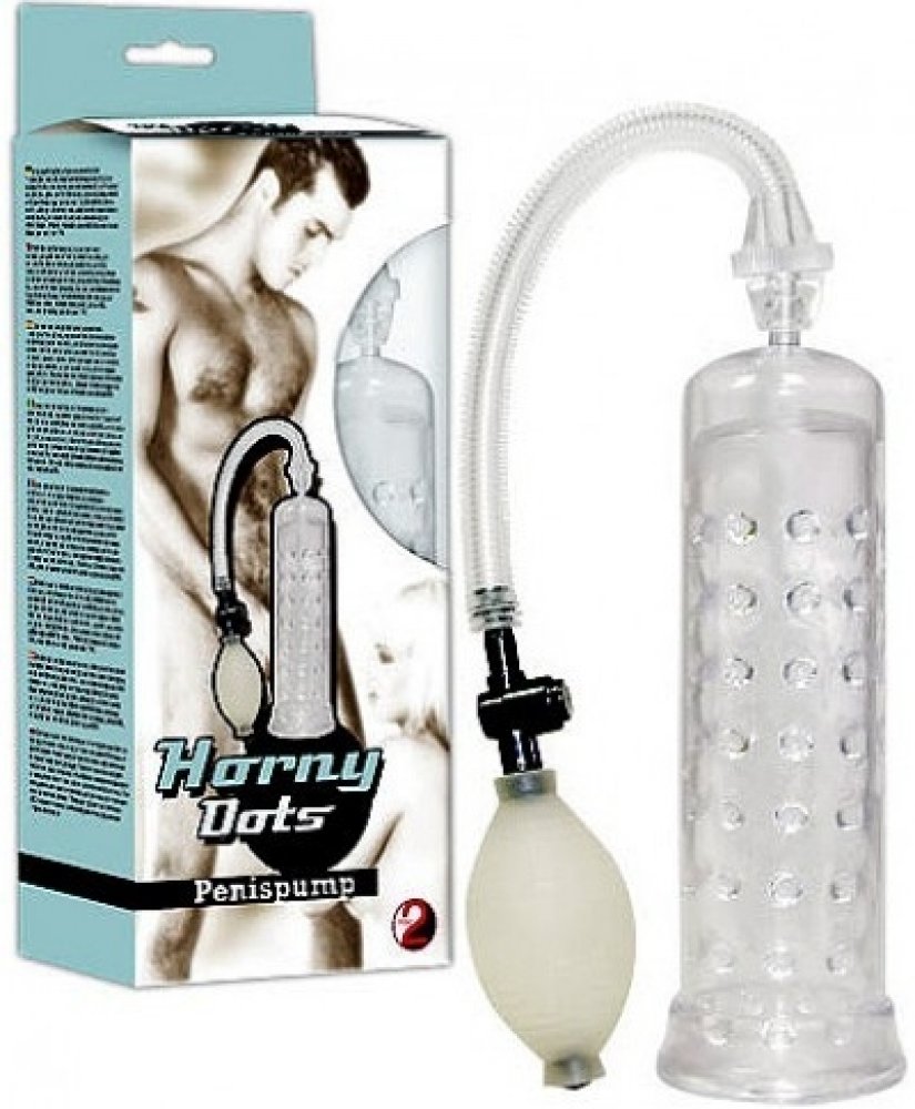 Vakuová pumpa Horny Dots s balónkem, transparentní. Ideální erotická pomůcka pro podporu erekce a dočasné zvětšení penisu.