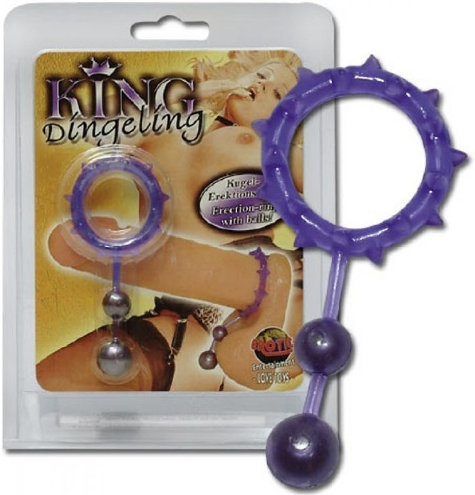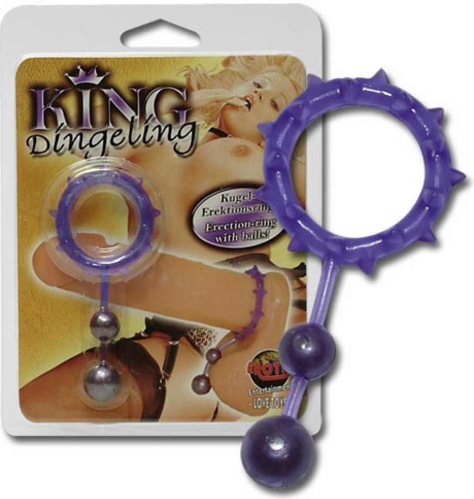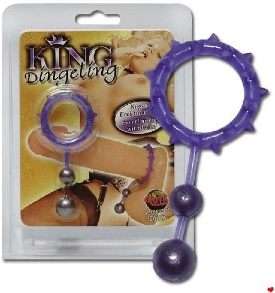 King Dingeling Cock Ring- erekční kroužek je ideálním doplňkem ložnice pro moderní pár. Udržuje pevnou erekci a oddaluje ejakulaci. Ale není určen jen pro muže. Tento opatřen kovovými kuličkami. Kuličky se houpají každým tahem a ťukají proti vám a vašemu partnerovi a přidávají tak další stimulaci. Délka koulí 5 cm - kuličky o průměru 1 a 1,5 cm. Materiál silikon.