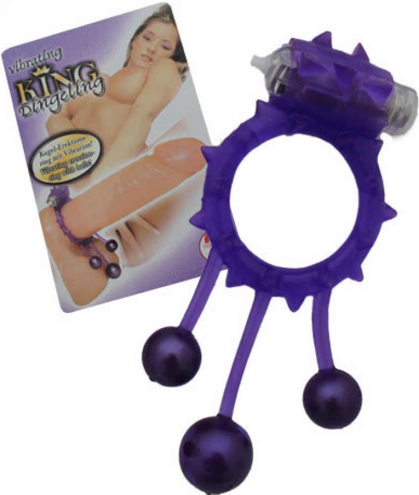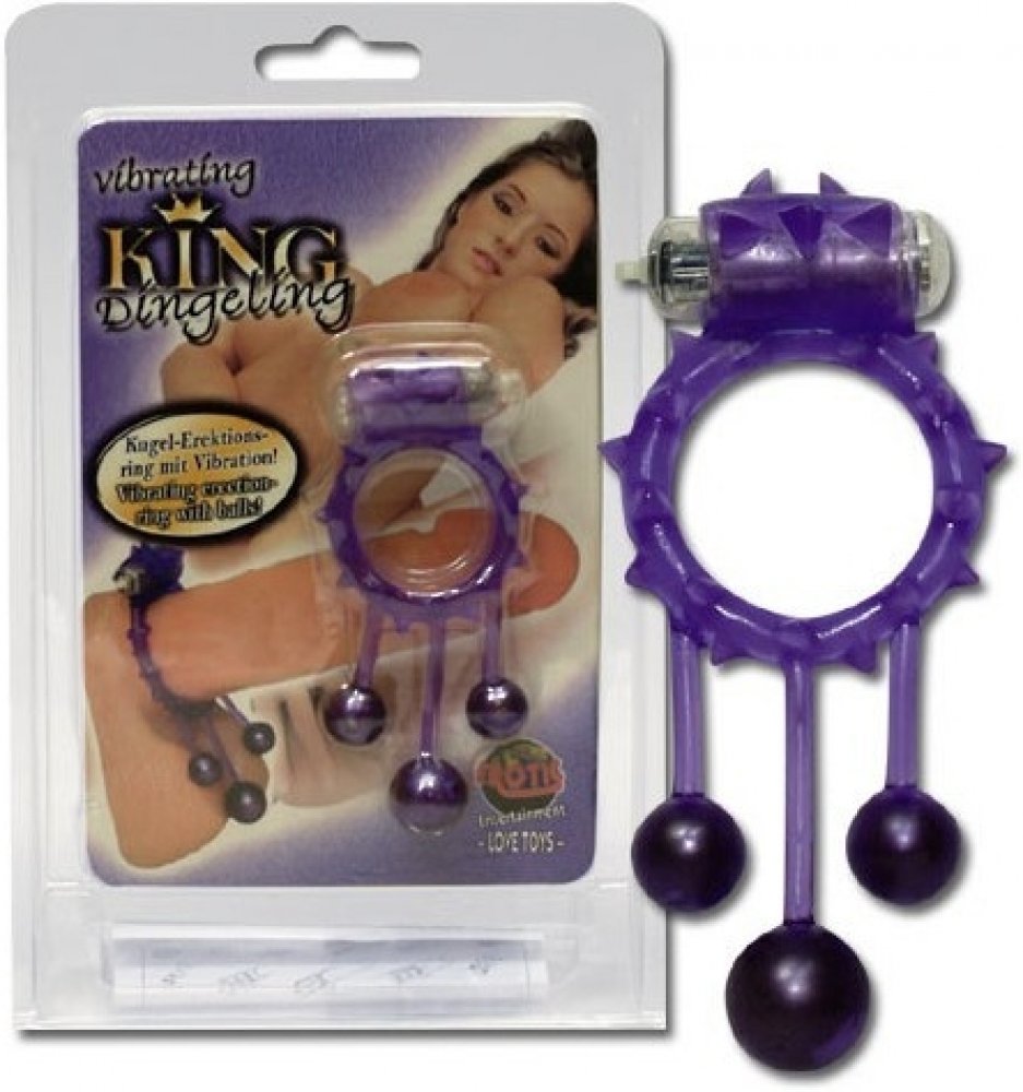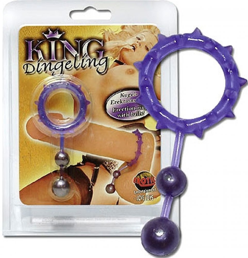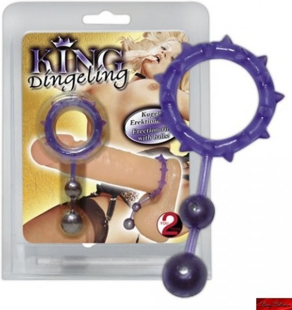 King Dingeling Cock Ring- erekční kroužek je ideálním doplňkem ložnice pro moderní pár. Udržuje pevnou erekci a oddaluje ejakulaci. Ale není určen jen pro muže. Tento opatřen kovovými kuličkami. Kuličky se houpají každým tahem a ťukají proti vám a vašemu partnerovi a přidávají tak další stimulaci. Délka koulí 5 cm - kuličky o průměru 1 a 1,5 cm. Materiál silikon.