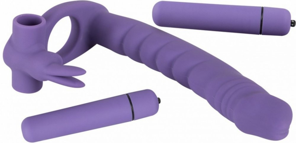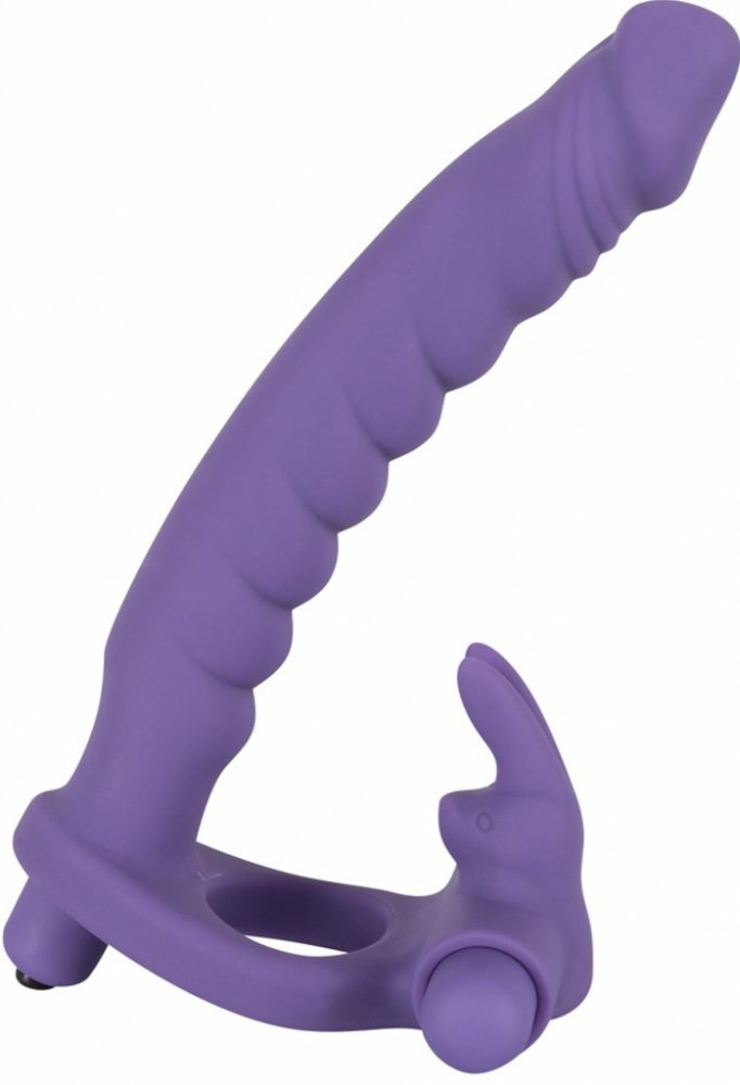 Je libo trojka? Stačí když partnerovi nasadíte Los Analos Double Delight na penis. Luxusní kroužek s fialovým dildem a králíčkem, který vás potěší zepředu i zezadu současně! Obsahuje i odnímatelný mini vibrátor pro stimulaci klitorisu.
