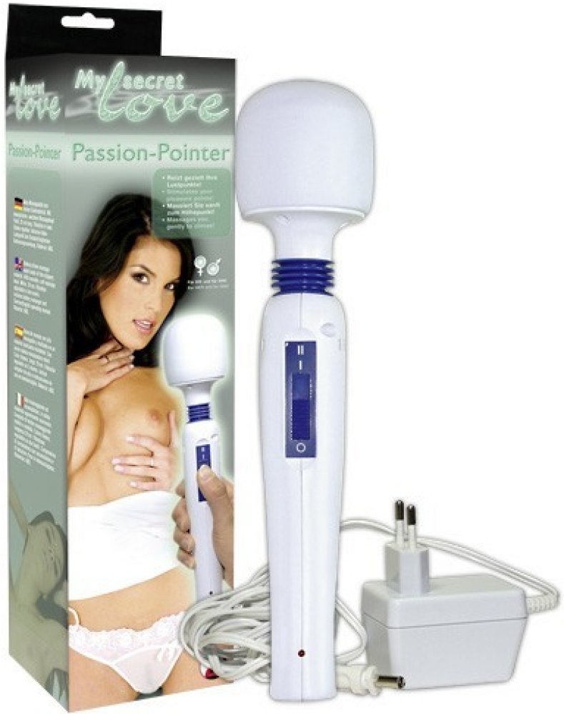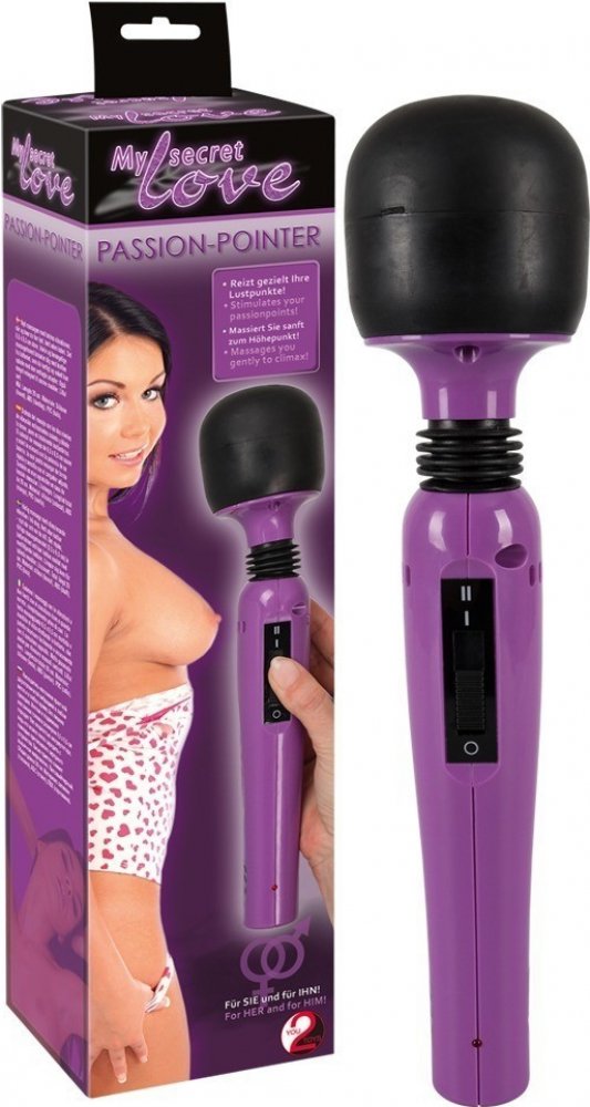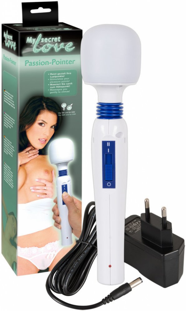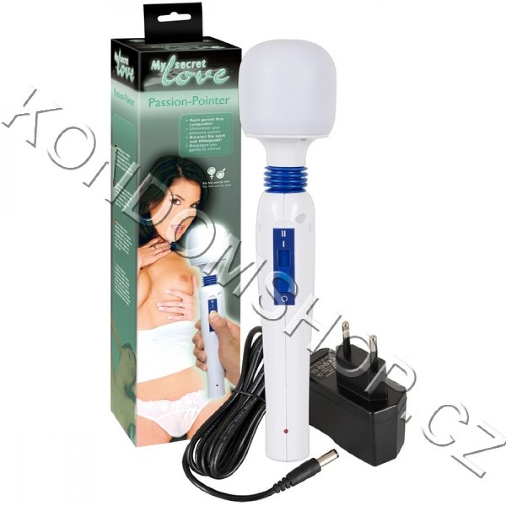 Masážní přístroj My secret Passion Pointer vychází svým vzhledem z konceptu legendárního Magic Wand. O vaši slast se postará silná masážní hlava ohebně spojená s rukojetí s ovládáním, takže použití je více než pohodlné. Vhodný k masáži kterékoliv části těla. Masážní hlava má kulatý tvar, povrch je z plastu příjemného na dotek. Vibrace mají dvě úrovně intenzity. Vnitřní akumulátor se nabíjí adapterem ze sítě. Pomůcku můžete používat i během nabíjení. Plné nabití indikuje LED dioda. Oddávejte se uvolňujícím masážím i smyslnému dráždění intimních míst ve dvojici nebo sám, vždy vám poslouží Passion Pointer k vaši spokojenosti.