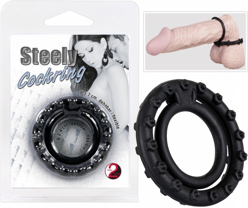 Steely Cockring je speciální sada kroužků na penis a varlata, vyrobených z pevného, ale super pružného silikonu.Proč je super?Vzrušující stimulace - Vlnitý tvar ti zajistí extra smyslný pocit jak na penisu, tak na varlatech, takže vzrušení bude ještě intenzivnější.Pružný a pohodlný - Díky silikonu jsou kroužky hodně pružné, ale zároveň dobře drží, aniž by tě někde tlačily nebo omezovaly.Silnější erekce - Kroužky pomáhají udržet krevní oběh, takže dosáhneš tvrdší erekce a vydržíš déle.Větší výkon - Kombinace kroužků posiluje tvou mužnost a podpoří tě při každé akci v posteli.Na co si dát pozor:Vždy si ověř, že ti kroužky sedí a nejsou moc těsné nebo nepříjemné.Nenos je příliš dlouho, aby ses vyhnul přerušení krevního oběhu nebo podráždění pokožky.Jak používat?Nejdřív nasaď kroužek na penis, teprve potom na varlata - obojí tak, aby ti bylo opravdu pohodlně.Užij si extra stimulaci a tvrdší erekci, zatímco kroužky pomáhají udržovat tvrdost a výdrž.Balení obsahuje:1 kus kroužku na penis i varlata (2,4 cm průměr), (3,7 cm průměr)Vlastnosti produktu:Barva: ČernáMateriál: SilikonPrůměr kroužku na penis: 2,4 cmPrůměr kroužku na varlata: 3,7 cmPružný materiálCelková hmotnost: 22 gDoporučení k čištění: Důkladně umyj jemným mýdlem a vlažnou vodou, opláchni a nech oschnout. Doporučujeme používat speciální čistič (06302500000) - lze objednat zvlášť.