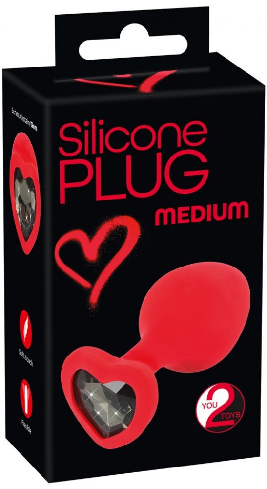 You2Toys Plug Medium - anální dildo s černým kamínkem ve tvaru srdce (červené) - střední