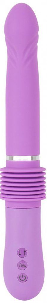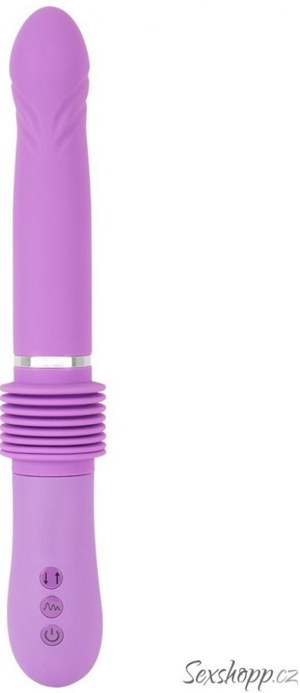 Tento fialový ďábel má co nabídnout – má mírně zkosenou špičku a stimulující drážky, ve kterých se skrývá spousta síly. Na výběr máte také ze 7 vibračních režimů a funkci tahu ve 3 rychlostech. Funkce tahu prodlužuje vibrátor až o 6 cm – znovu a znovu Vás pořádně vymrdá! Funkce vibrací a tahu lze nastavit stisknutím tlačítka a ovládat samostatně. Vibrátor lze navíc dobíjet přiloženým USB kabelem. A to se vyplatí!