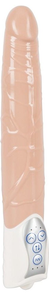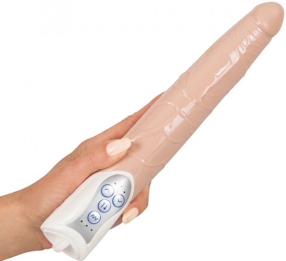 Vibrátor je vyrobený z pevného silikonu, má praktickou rukojeť s podsvícenými tlačítky a hladké tělo s mírně tvarovaným "žaludem". Celkem si můžete vybrat ze 3 úžasných rychlostí přirážení (vibrátor se prodlouží až o 6 cm) a 7 vibračních.