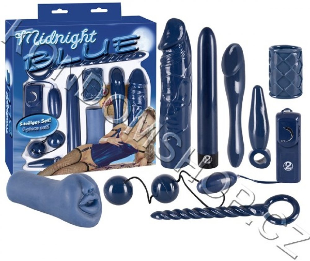 9-dílný set erotických hraček Midnight Blue Set v modré barvě pro muže i ženy. Pro opravdicky pestré dobrodružství za skvělou cenu.Sada obsahuje:Hladký plastový vibrátorSilikonový návlek s jemný žilkováním a žaludemAnální vývrtka s očkem na uchyceníAnální kolíček s očkem pro navlečení na prstNávlek na penis otevřený na obou koncíchUmělá vagína, s vytvarovanými ústy a nosemOboustranné gelové dildoVenušiny kuličkyVibrační vajíčko, s dálkovým ovládánímVlastnosti a specifikace sadyPočet dílů: 9Barva: ModráUrčení: Pro muže i ženyObjevte nové dimenze potěšení s touto pestrou sadou. ✨