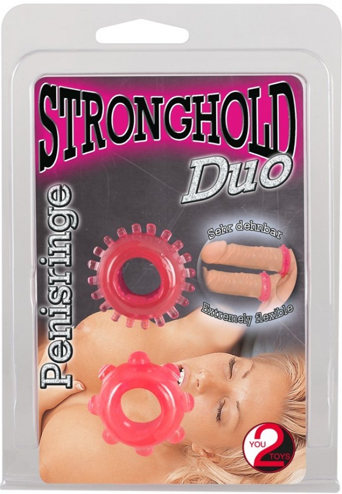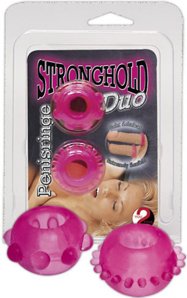 Stronghold Duo je sada dvou erekčních kroužků v atraktivní růžové barvě. Po obvodu obou se nacházejí dráždivé výčnělky, první disponuje velkým počtem malých výběžků, druhý menším počtem výraznějších výstupků.