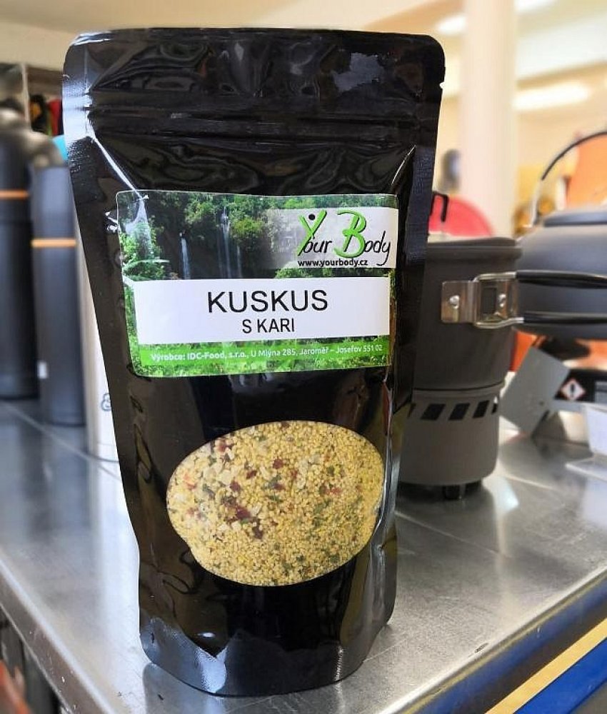Složení:Pšeničný kuskus (78 %), sušený ananas (oxid siřičitý), kokos strouhaný, směs koření (kari 3 %, paprika granulát, koriandr, zázvor), sůl. Alergeny:Lepek a oxid siřičitý. Může obsahovat stopy hořčice a sóji. Země původu ovoce a ořechů: mimo EU Návod k přípravě: 1 díl kuskusu přelijte 2 díly vroucí vody, zamíchejte a nechte odstát pod pokličkou cca 5 minut. Na závěr kuskus pročechrejte vidličkou. Sladké varianty se skvěle hodí ke snídani, svačině či přípravě dezertu. Rychlý oběd či večeři oceníte v případě slaných variant. Kuskus se hodí jako příloha k masu, rybě i zelenině. Skladování: teplota 25 °C, vlhkost: 60 %, v originálních uzavřených obalechHmotnost: 300 gVýživové hodnoty: ve 100 gEnergetická hodnota 358 kcal/1498 kJTuky 4,5 gz toho nasycené 2,2 gSacharidy 67 gz toho cukry 9,8 gBílkoviny 10 gSůl 1,5 gVláknina 5,2 gSodík 0,6 g Výrobce: IDC-FOOD, s.r.o., U Mlýna 285, Jaroměř 551 02 Vyrobeno: Česká republika