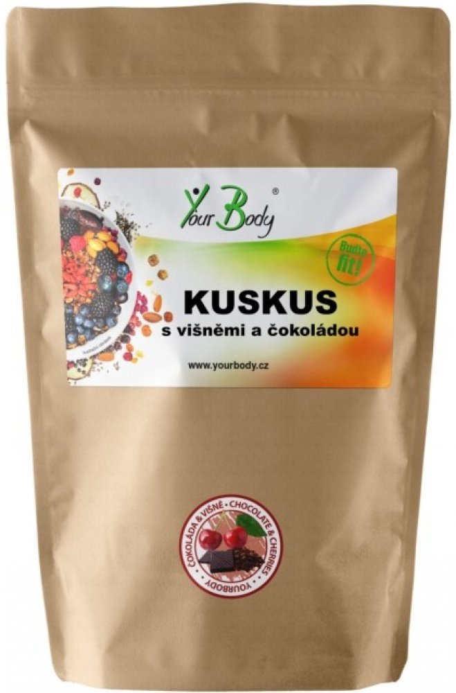 Složení: Pšeničný kuskus(64 %), cukr, sušená jablka, chia semínka, čokoláda 6 % (cukr, kakaové máslo, kakaový prášek se sníženým obsahem tuku, vanilkový extrakt, slunečnicový lecitin), višně sušené mrazem (5 %), aroma. Alergeny:Lepek. Může obsahovat stopy sóji, hořčice, mléka a skořápkových plodů. Země původu ovoce: EU a mimo EU Návod k přípravě: 1 díl kuskusu přelijte 2,5 díly vroucí vody, zamíchejte a nechte odstát pod pokličkou cca 5 minut. Na závěr kuskus pročechrejte vidličkou. Sladké varianty se skvěle hodí ke snídani, svačině či přípravě dezertu. Rychlý oběd či večeři oceníte v případě slaných variant. Kuskus se hodí jako příloha k masu, rybě i zelenině. Skladování: teplota 25 °C, vlhkost: 60 %, v originálních uzavřených obalechHmotnost: 250 g (na 6 porcí hotového pokrmu)Výživové hodnoty: ve 100 gEnergetická hodnota 363 kcal / 1519 kJTuky 3,7 g z toho nasycené 0,75 gSacharidy 70 g z toho cukry 22,2 gBílkoviny 10,4 gSůl 0 g Vláknina 8,6 g Výrobce: IDC-FOOD, s.r.o., U Mlýna 285, Jaroměř 551 02 Vyrobeno: Česká republika