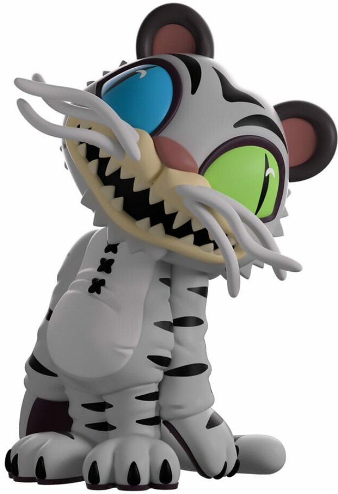 "Jeho oblíbený" Viděli jste to? Počkat, kam se poděl?! Už je zase zpátky!! Rychle, drž se dál od tmy, nebo nás to dostane! Naklání se na stranu, když stojí na výšce 5,1 palce s párem obrovských nesourodých zelených a modrých očí, které zírají různými směry, a přes bledou tlamu pod dlouhými kroutícími se vousy se táhne znepokojivý úsměv plný ostrých zubů. Z temene hlavy jim vykukují tmavé kulaté uši a světle šedé tělo lemují černé pruhy, pytlovité ruce volně visí po obou stranách a o nohy se jim opírají fialové polštářky tlapek, zatímco ze zad se jim táhne silný ocas. Zvenčí je jejich obal vidíme v tmavé místnosti osvětlené jediným matným reflektorem. Zatímco v interiéru se nacházejí přímo uprostřed bordó a žlutého cirkusového stanu s dlouhými závěsy a světelnými šňůrami, který pak pokračuje na ochranném obalu, kde je jejich postava vidět skrz velké průhledné okno v přední části obalu. Tento sběratelský předmět je dodáván v matném, reliéfním vnějším obalu a plastovém chrániči vlastní velikosti pro maximální ochranu během přepravy. O hře Five Nights At Freddy's: Je to hororová hra o přežití, kterou vytvořil Scott Cawthon. Děj hry se odehrává tak, že hráč pracuje jako noční ochranka v rodinné pizzerii Freddyho Fazbeara a rychle se dostává do konfliktu se sbírkou vnímajících animatroniků. Krátce po vydání v roce 2014 si hra získala kultovní oblibu a rychle se vyvinula do komplexního fiktivního univerza doplněného o lore a různé spin-offy.