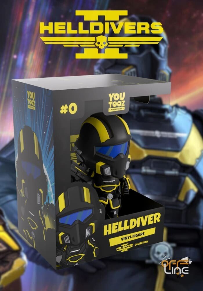 Tento Helldiver, ozbrojený až po zuby a připravený rozdávat zaslouženou demokracii, klečí na jedné noze s výškou 10 cm a sebevědomě zvedá levou ruku s palcem nahoru, zatímco v pravé svírá silný kulomet. Je oblečený tak, aby zvládl jakoukoli bitvu bez úhony a na hlavě nosí pevnou helmu s modrým hledím a žlutými pruhy nahoře. Dlouhý plášť připevněný k ramenům spočívá přes plátované brnění s jasně žlutým lemováním.