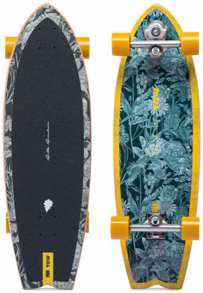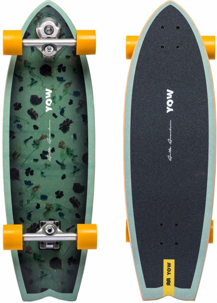 Surf Skate komplet Yow Aritz Aranburu Pro ty, kteří ho ještě neznají, je Aritz Aranburu jedním z nejlepších surfařů v historii španělského surfingu. Byl jediným baskickým a španělským surfařem, který patřil mezi top 45 surfařů světa (WCT 2007). Je charismatický a nadšený nejen v surfování, ale také v každém aspektu života. V době, kdy Yow začal navrhovat jeho signature model, měl už ve všem jasno, takže vývoj surf skatu trval doslova pár dnů. Design byl navržen podle jeho stylu surfování a jeho klasického surf boardu. Specifikace - Rozměry: 30.5" x 9.75" - Wheelbase: 18" - Osy: YOW System V4 S4 - Trucky: YOW 9.0" Standard/Silver - Kolečka: 66 x 51mm 76A
