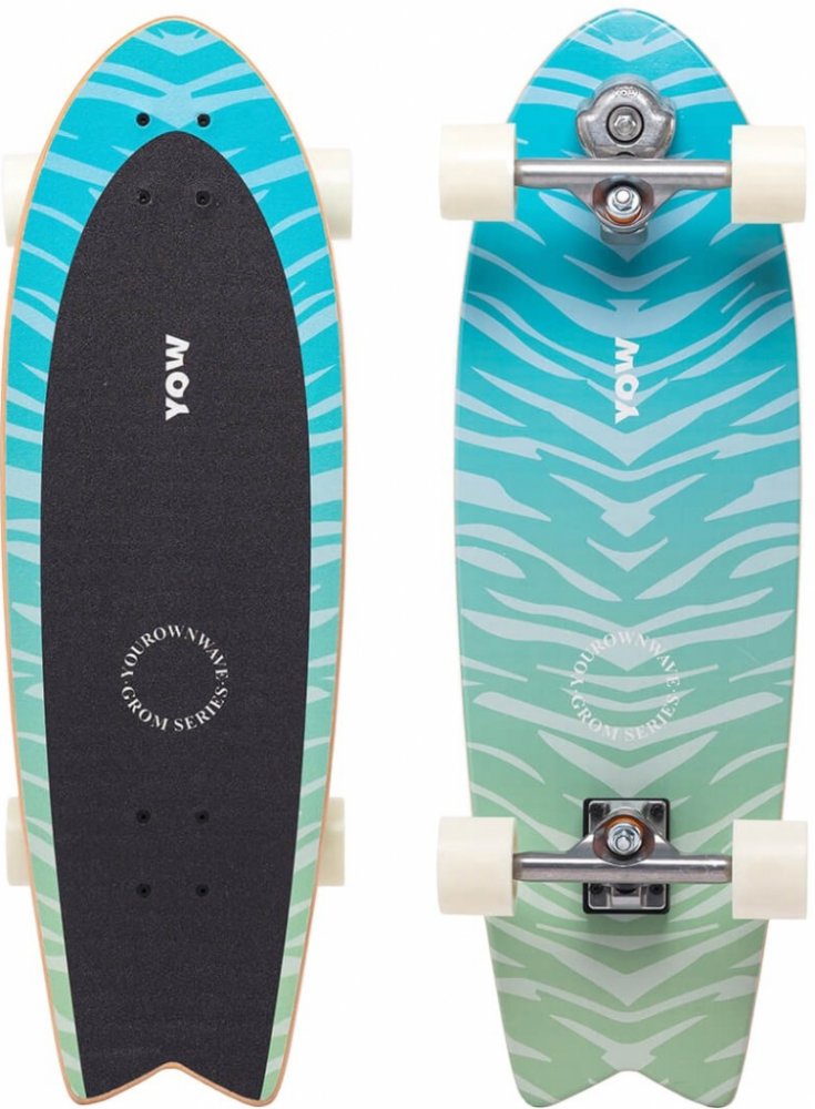 Surfskate YOW Huntington 30" Grom vyniká všestranností a vintage designem fish tail, který si bere inspiraci v retro surfboardech. Se 4mm závěsným systémem S4 je ideální pro děti nebo dospělé do 50 kg.