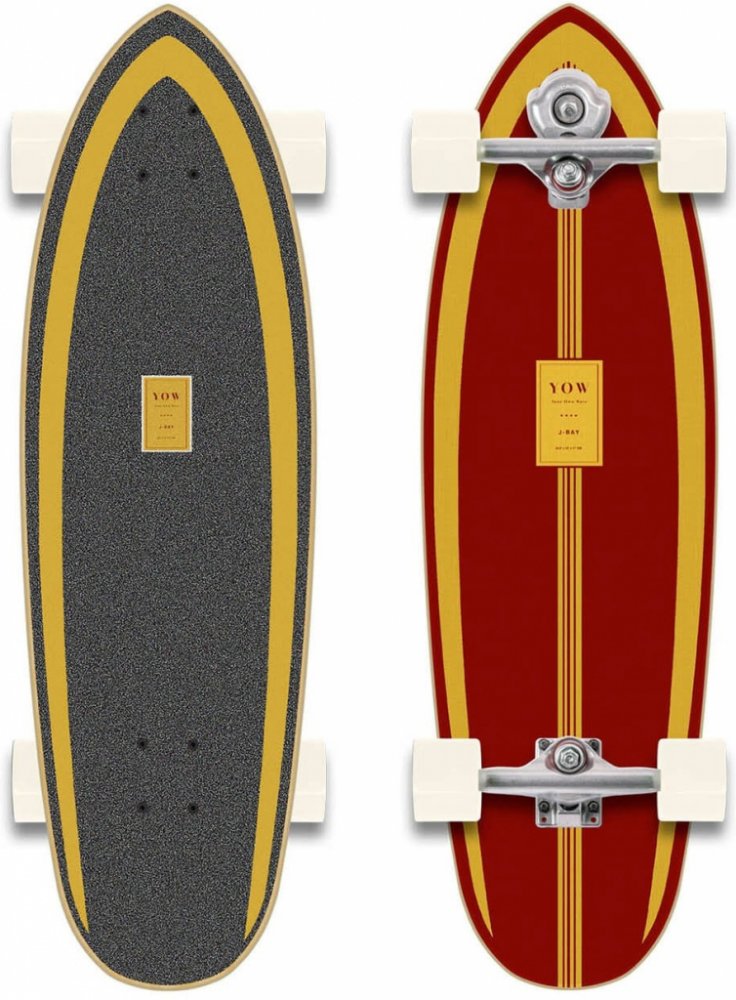 Surf skate Yow J-Bay J-Bay je vynikající nekonečná pláž umístěna v Jižní Africe. Tento model byl inspirován klasickou surfovou deskou Toma Currenta se zaobleným tailem. Grafika vyobrazuje J-Bay v tom nejlepším. Yow System Yow surf skate systémy V.4 S4 a V4 S5 umožňují vybrat si kratší nebo delší wheel base na stejném základě. Kratší wheel base pro rychlejší pumpování nebo delší wheel base pro širš...