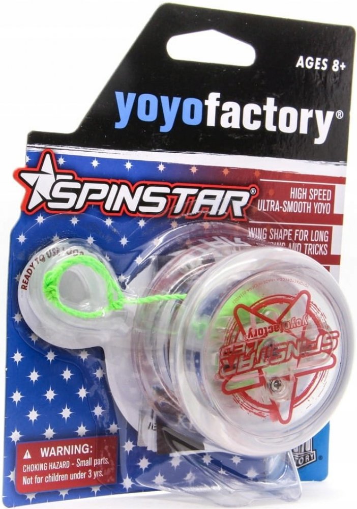 Spinstar je skvělé yoyo pro začátek. Je vyrobené z plastu a vrací se na trhnutí ruky (responzivní yoyo). Jelikož yoyo v sobě nemá kuličkové ložisko, tak Spinstar nepotřebuje žádnou větší péči, prostě funguje tak jak má. Zvládnete s ním veškeré základní triky od Sleeperu po Rock the Baby, Around the World nebo například Trapézu.