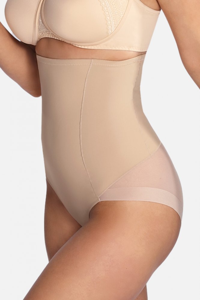 Stahovací kalhotky Ramona vám pomohou dotvarovat siluetu pod přiléhavými šaty. Lehoučký materiál jemně přilne k tělu a díky silikonovému proužku na vnitřní straně pasu drží kalhotky perfektně na svém místě. Oblast zadečku tvoří jemná síťovina s lehce nařaseným svislým švem, který nádherně vymodeluje pozadí. MID CONTROL – střední stupeň zeštíhlení Silikonový proužek na vnitřní straně pasu Okraje řezané laserem Zvýšený pas sahající pod prsa Zesílený bavlněný klín Svislé švy na zadní části