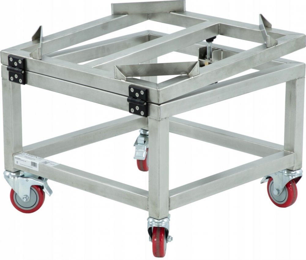 Kompaktní přepravní vozík určený k pohodlnému a bezpečnému přemísťování nádob a zařízení na pastování medu o objemu 50 a 70 litrů, nevybavených vyhřívacím pláštěm. Vyroben z nerezové oceli, odolný proti korozi a intenzivnímu používání. Otočná kolečka s brzdami zajišťují stabilitu a plnou kontrolu během transportu.