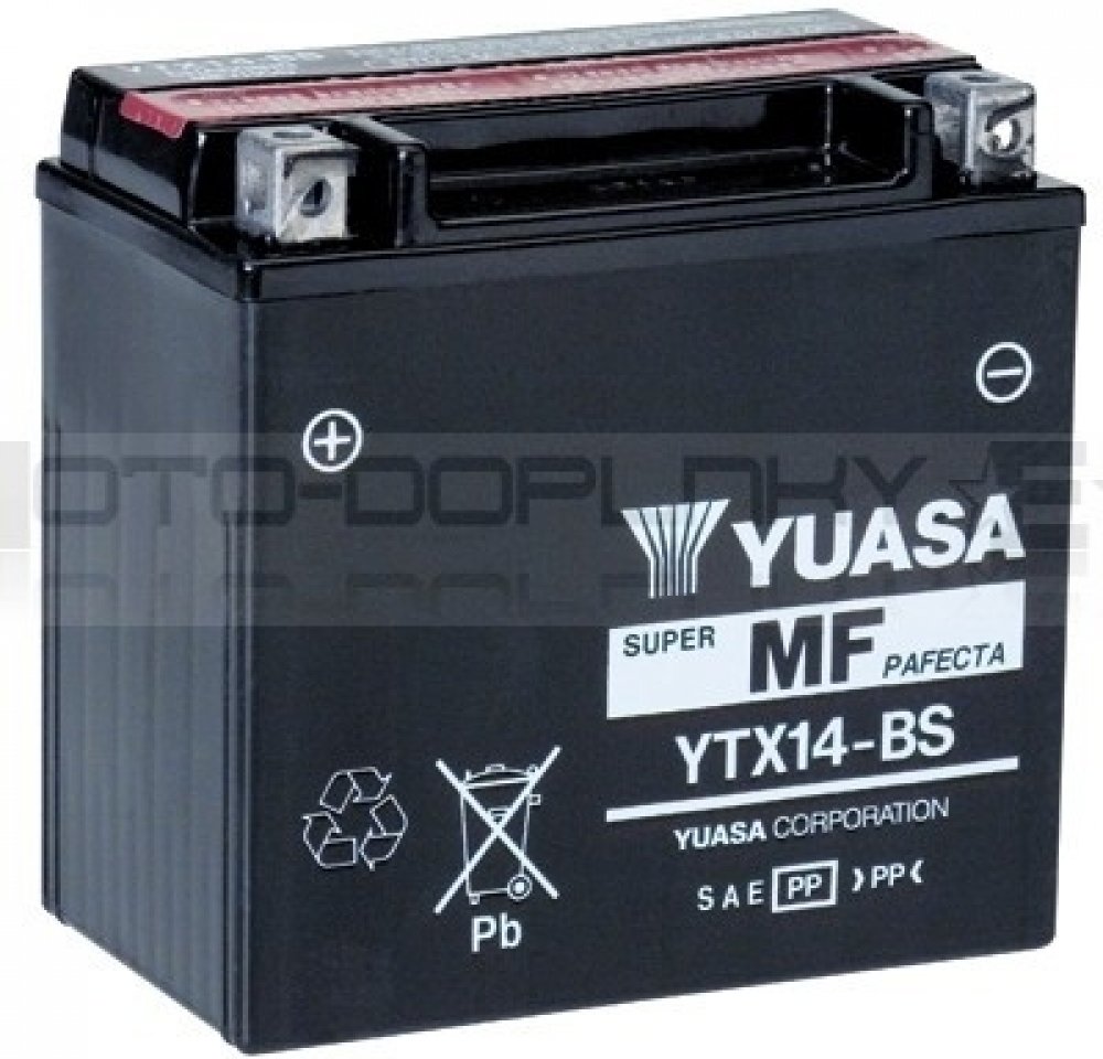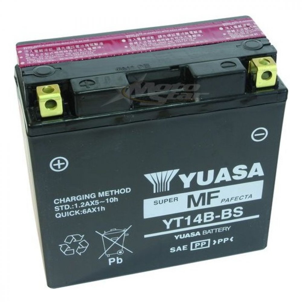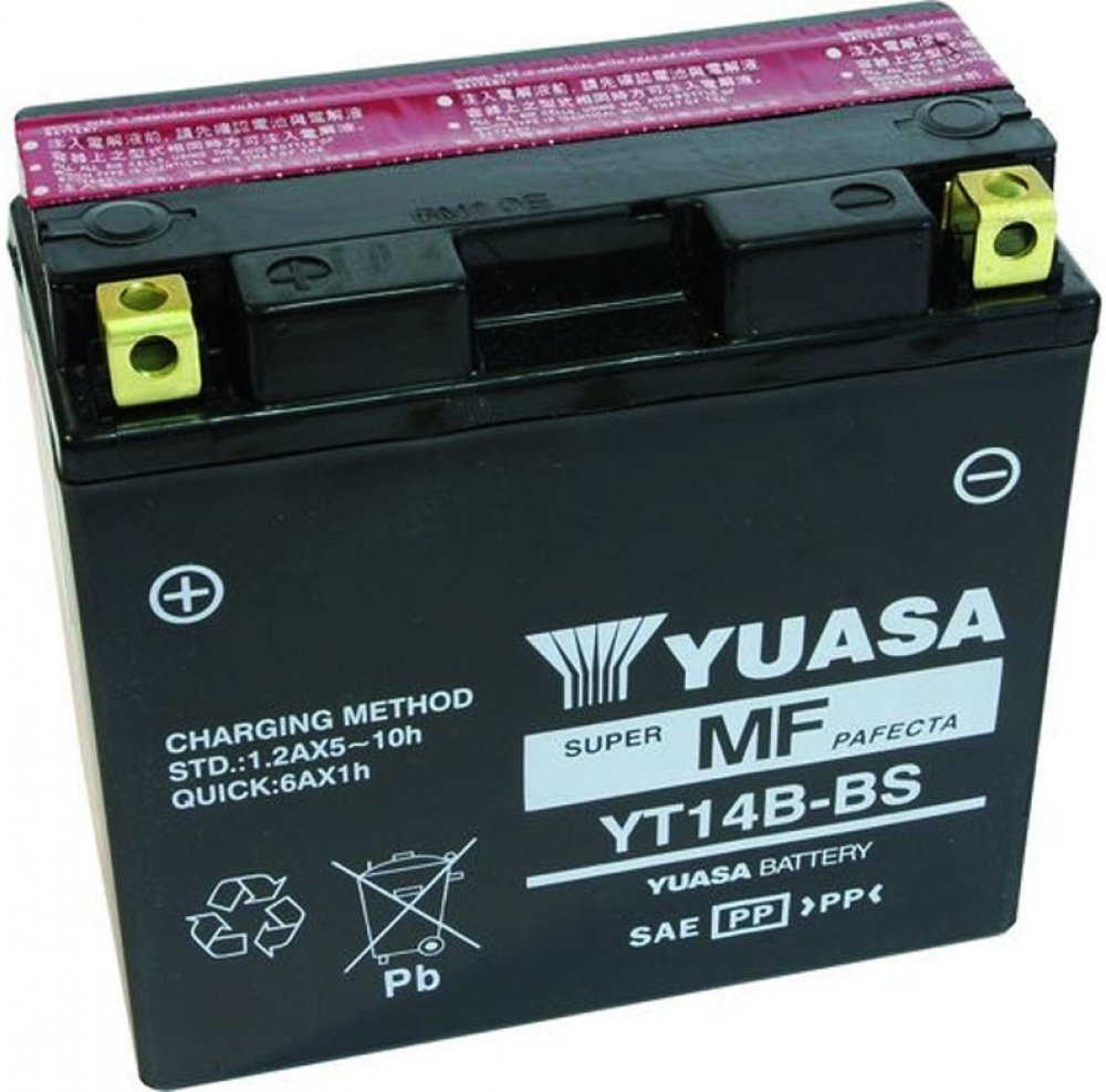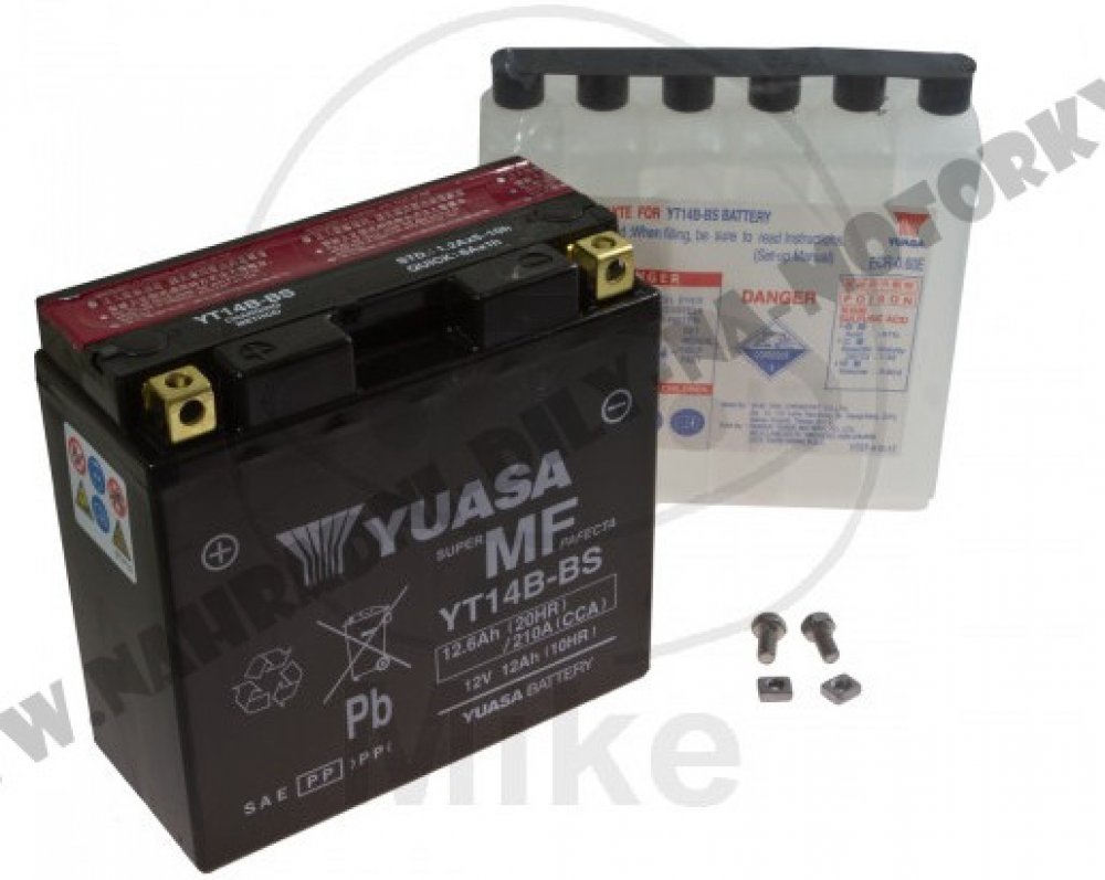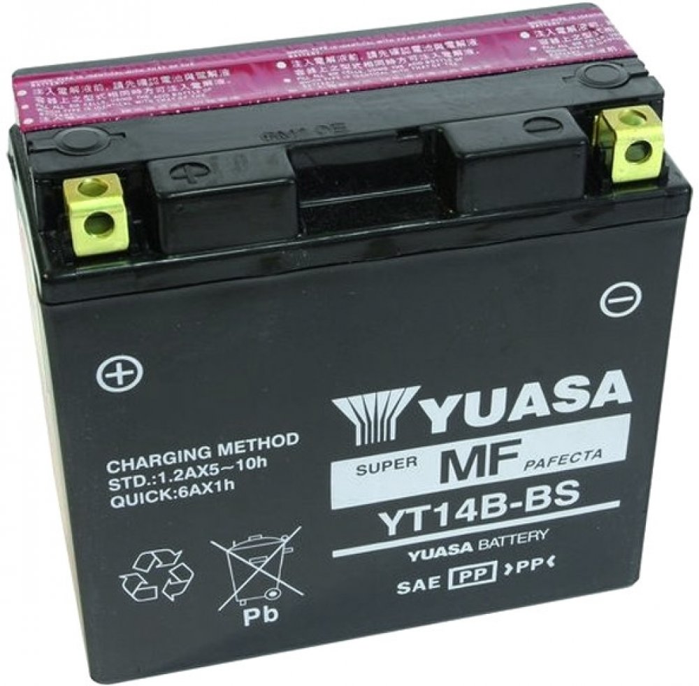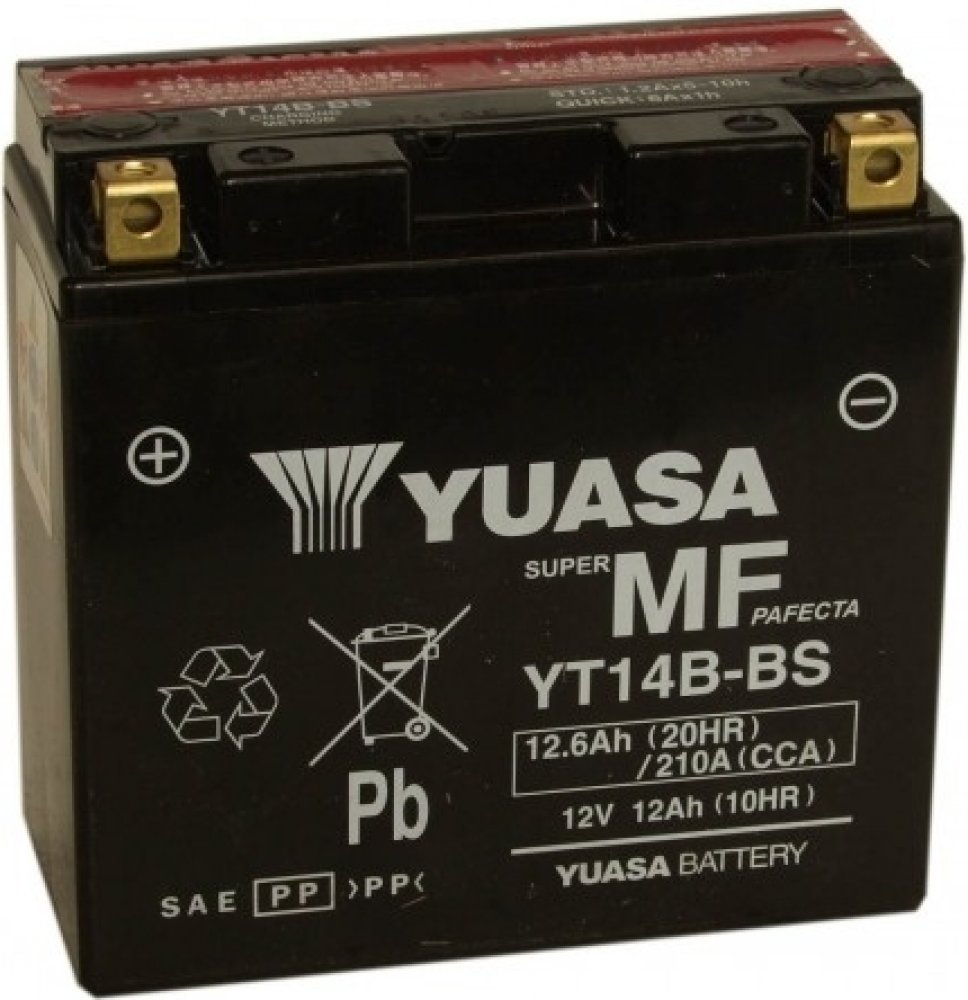 YT14B-BS 12V-12Ah bezúdržbový VRLA motoakumulátor YUASA. Akumulátory MF mají o 30% vyšší startovací výkon.