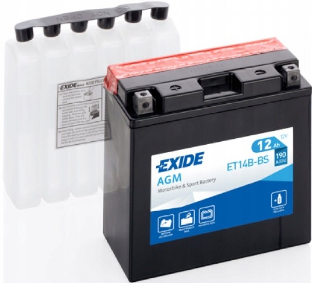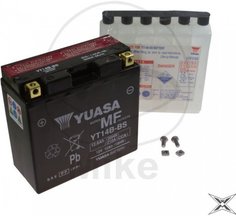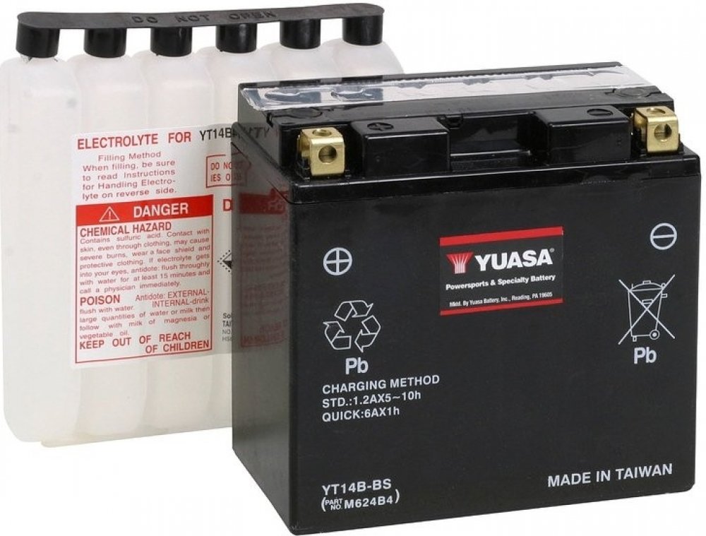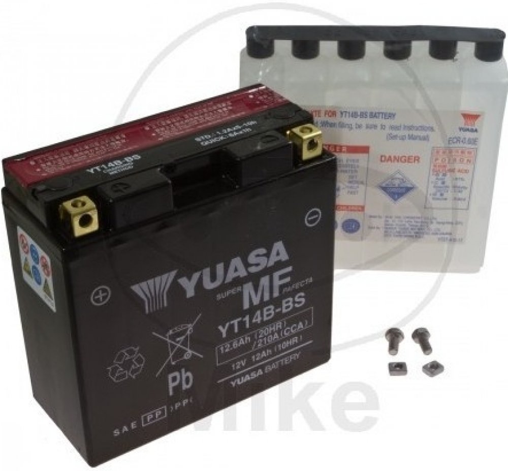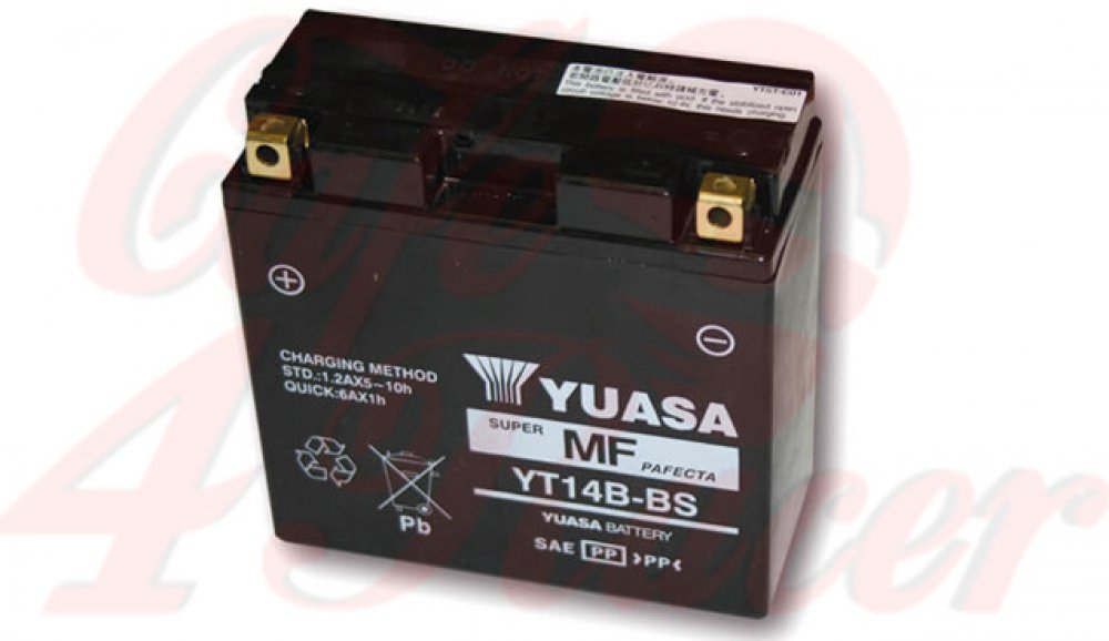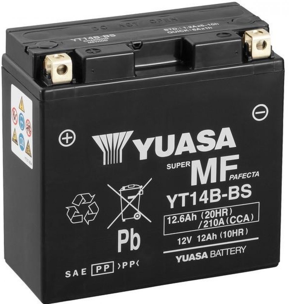 YT14B-BS 12V-12Ah bezúdržbový VRLA motoakumulátor YUASA. Akumulátory MF mají o 30% vyšší startovací výkon.