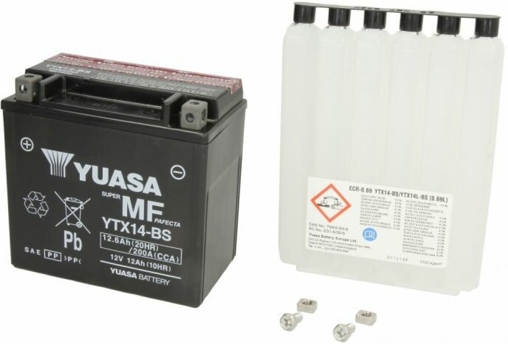 Bezúdržbový (MF) VRLA (bezúdržbový ventilem řízený) akumulátor YTX14-BS nikdy nepotřebuje doplňování, avšak stále vyžaduje periodické dobíjení! Ideální pro motocykly, jízdní a žací stroje a vodní skútry.
