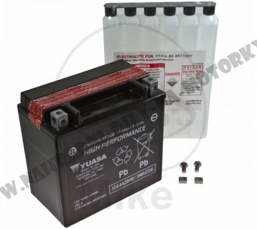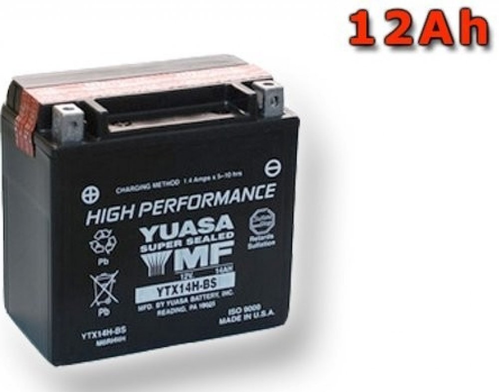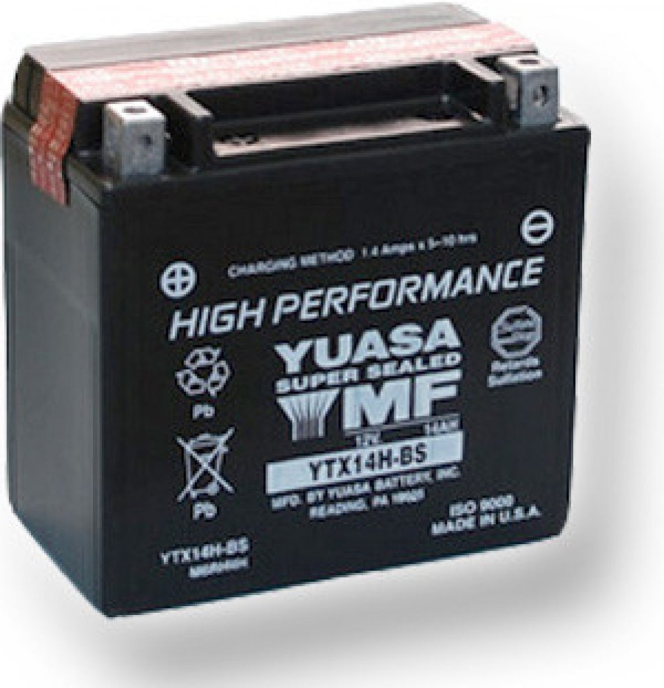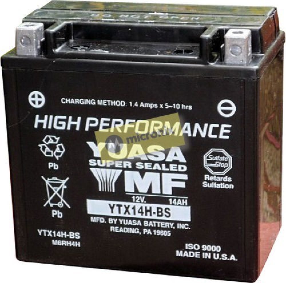 YTX14H-BS 12V-14Ah bezúdržbový VRLA motoakumulátor YUASA. Akumulátory MF mají o 30% vyšší startovací výkon.