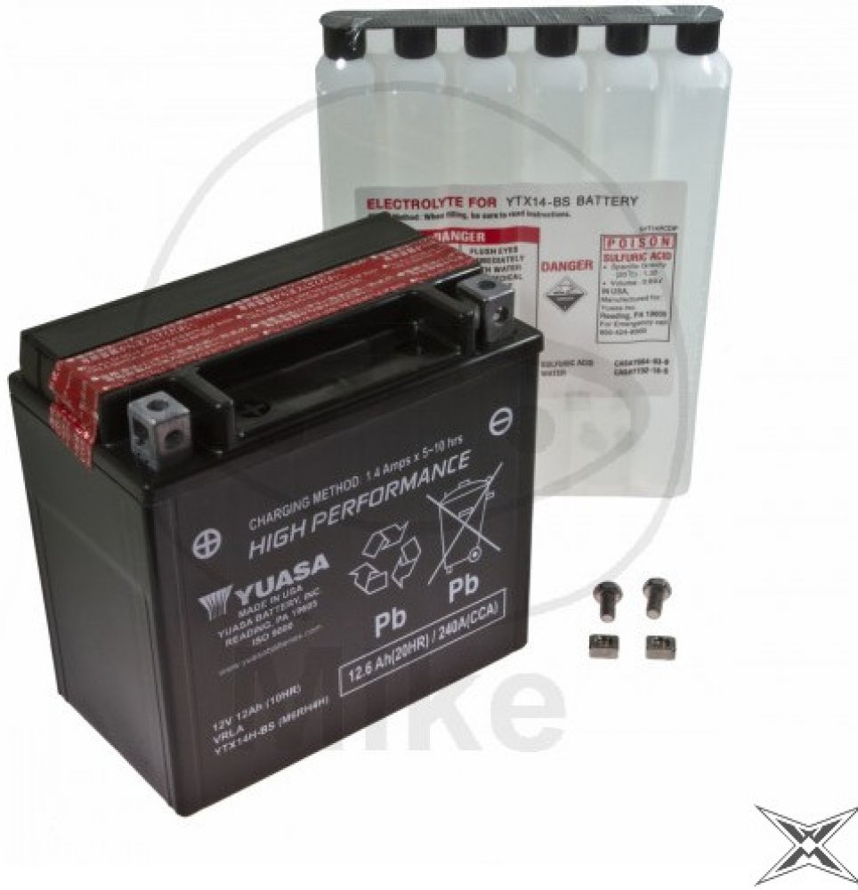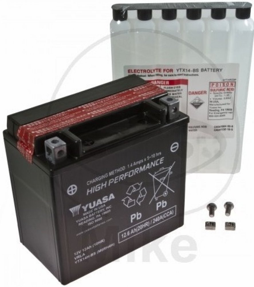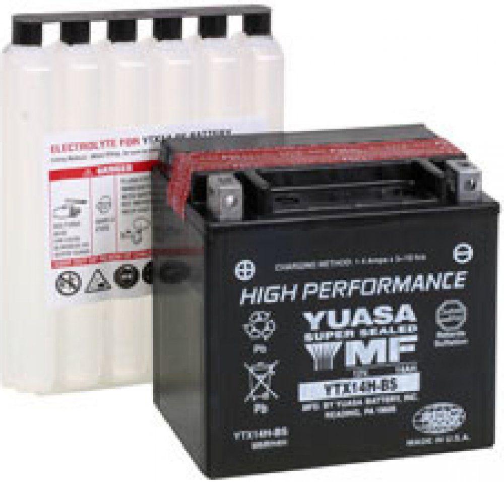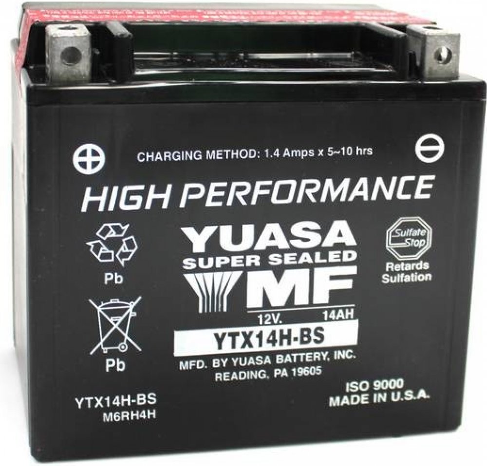YTX14H-BS 12V-14Ah bezúdržbový VRLA motoakumulátor YUASA. Akumulátory MF mají o 30% vyšší startovací výkon.