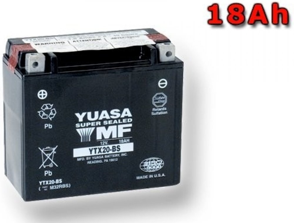 Popis produktu YTX20-BS 12V-18Ah bezúdržbový High Performance motoakumulátor YUASA. Motobaterie zasíláme suché přednabité s náplní. Made in USA. Akumulátory High Performan...