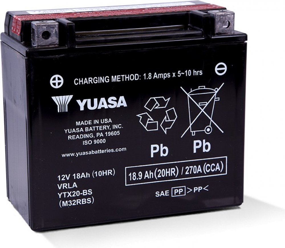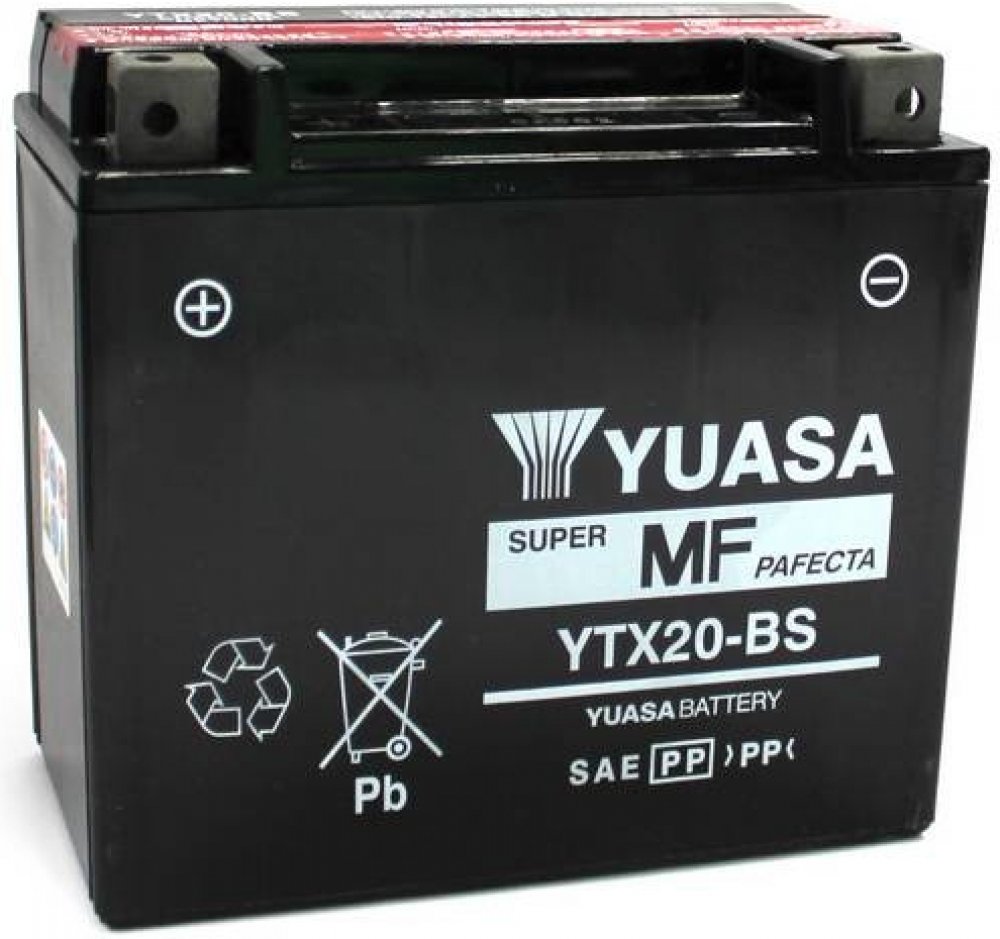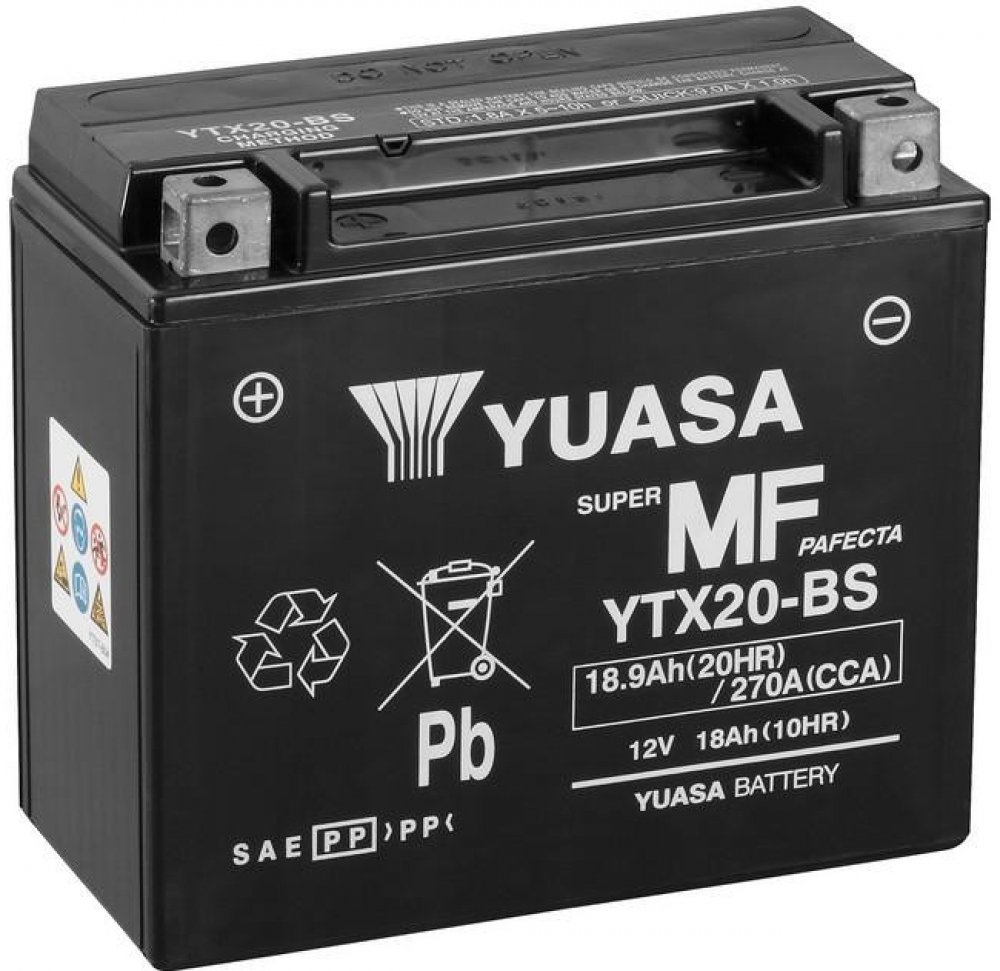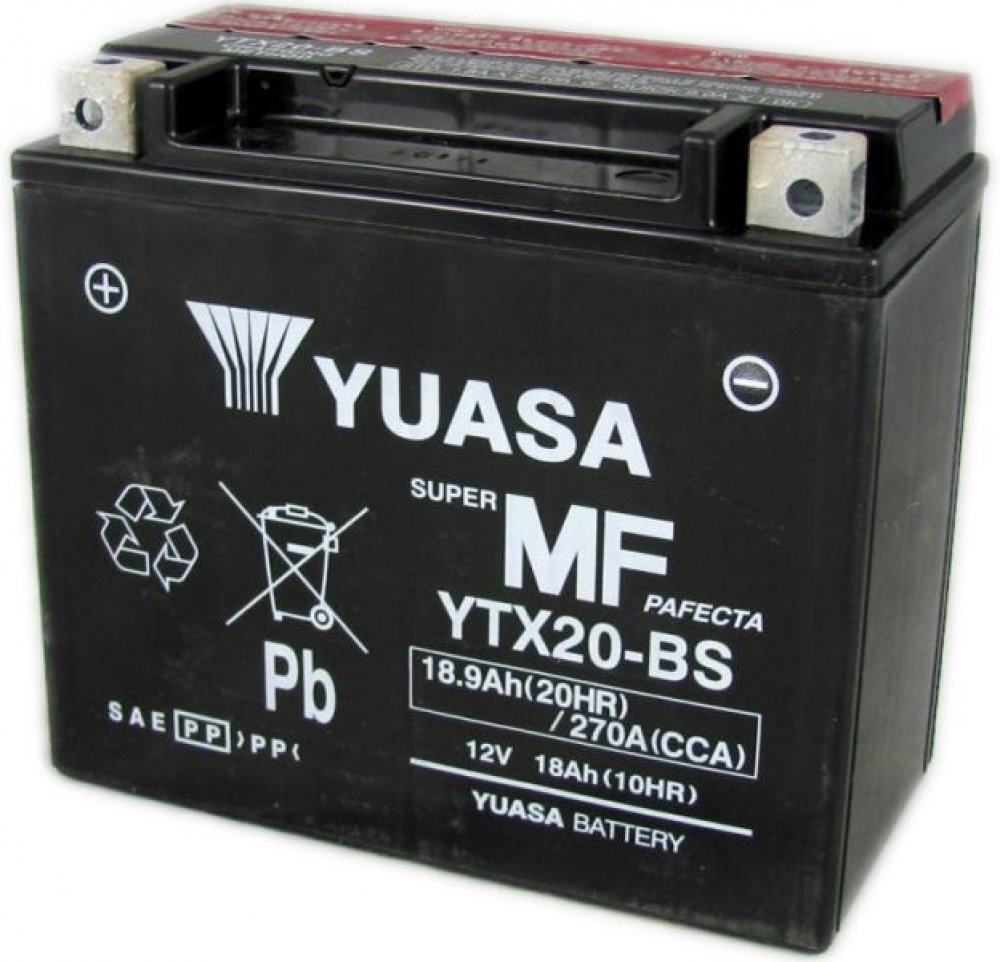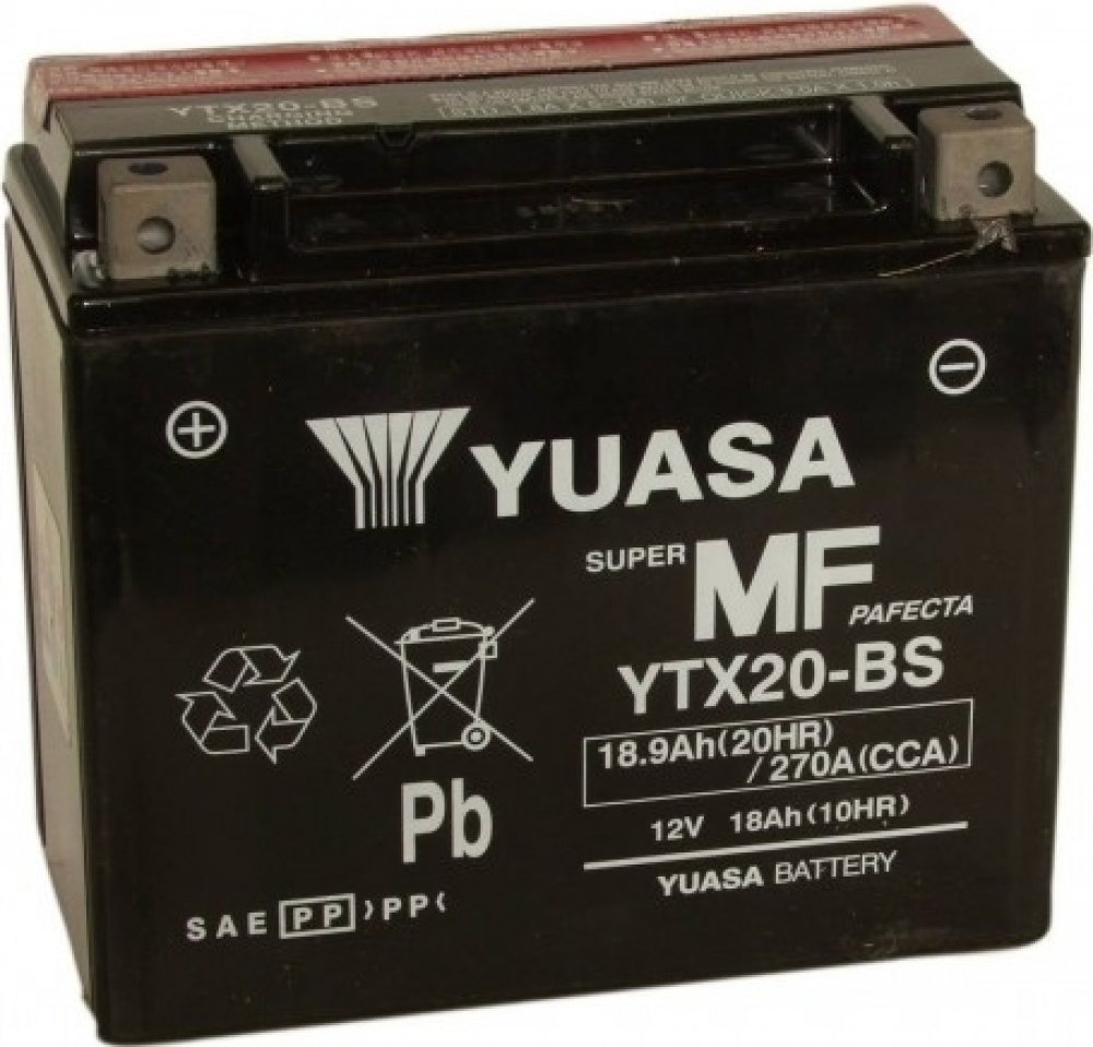 YTX20-BS 12V-18Ah bezúdržbový High Performance motoakumulátor YUASA. Motobaterie zasíláme suché přednabité s náplní. Made in USA. Akumulátory High Performance MF mají až o 30% vyšší výkon než běžné bezúdržbové VRLA akumulátory.