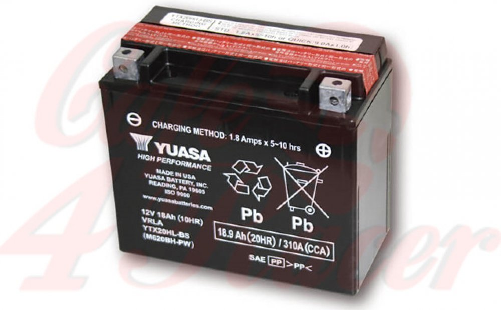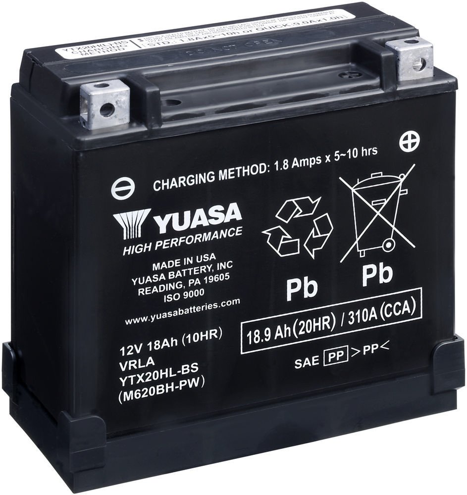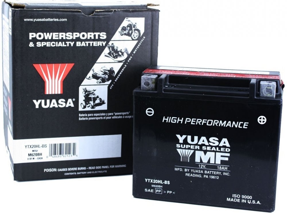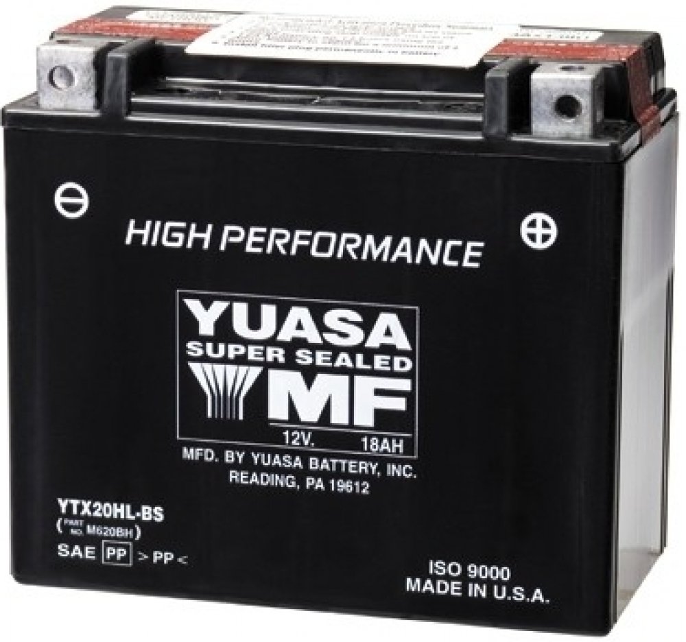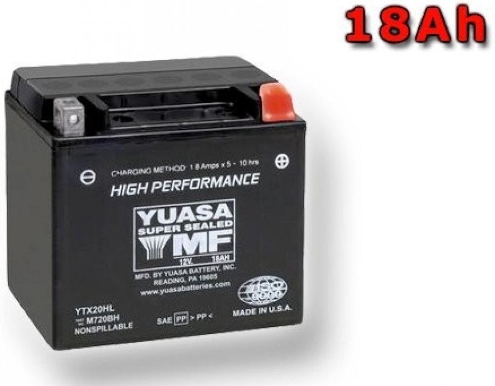 YTX20HL-BS 12V-18Ah bezúdržbový High Performance motoakumulátor YUASA. Made in USA. Akumulátory High Performance MF mají až o 30% vyšší výkon než běžné bezúdržbové VRLA akumulátory.