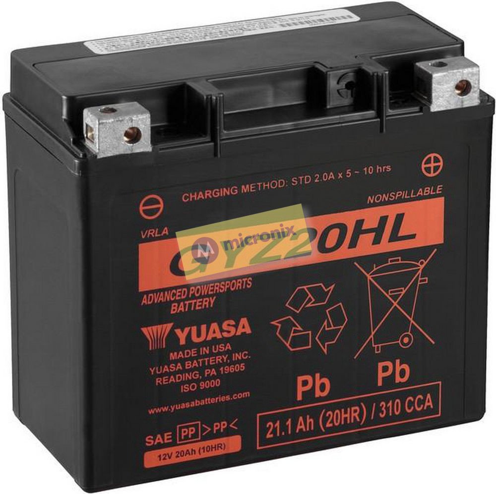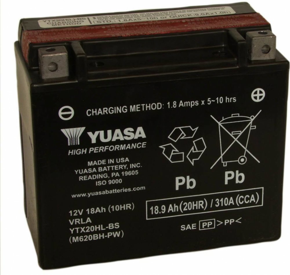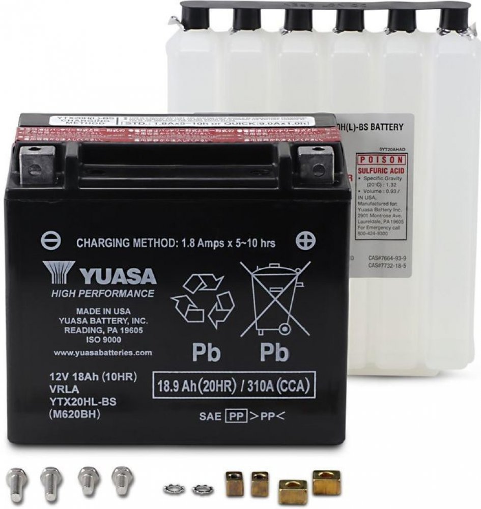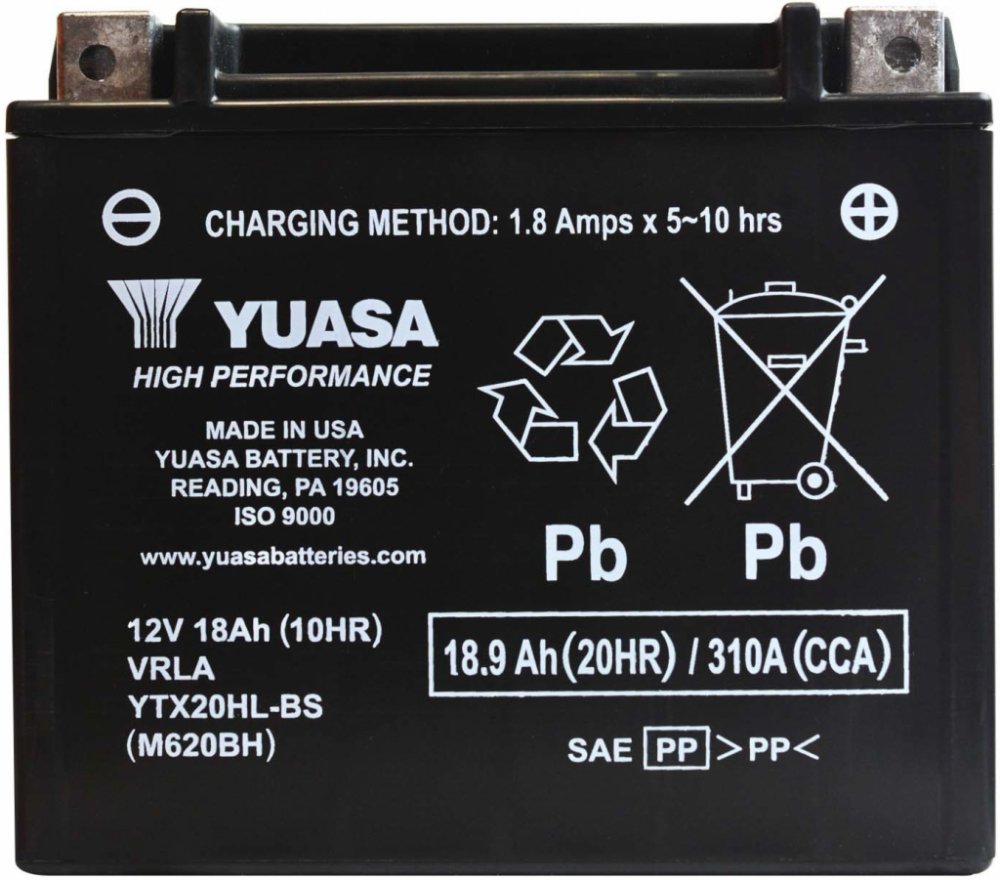 YTX20HL-BS 12V-18Ah bezúdržbový High Performance motoakumulátor YUASA. Made in USA. Akumulátory High Performance MF mají až o 30% vyšší výkon než běžné bezúdržbové VRLA akumulátory.