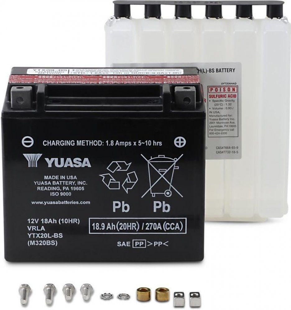 Bezúdržbový (MF) VRLA (bezúdržbový ventilem řízený) akumulátor YTX20L-BS nikdy nepotřebuje doplňování, avšak stále vyžaduje periodické dobíjení! Ideální pro motocykly, jízdní a žací stroje a vodní skútry.
