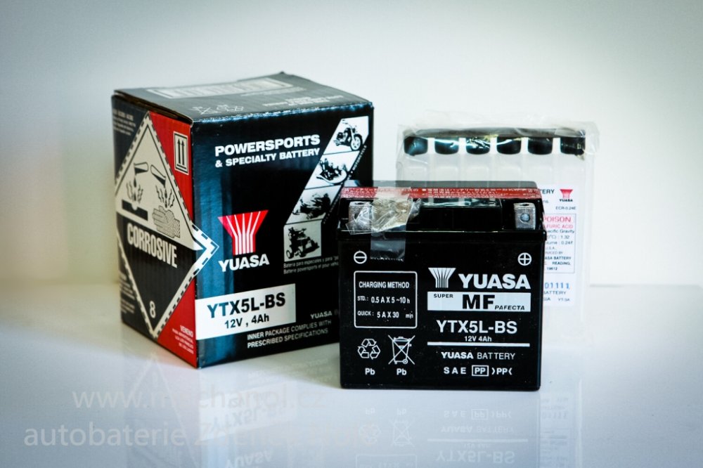 Bezúdržbový (MF) VRLA (bezúdržbový ventilem řízený) akumulátor YTX5L-BS nikdy nepotřebuje doplňování, avšak stále vyžaduje periodické dobíjení. Ideální pro motocykly, jízdní a žací stroje a vodní skútry.