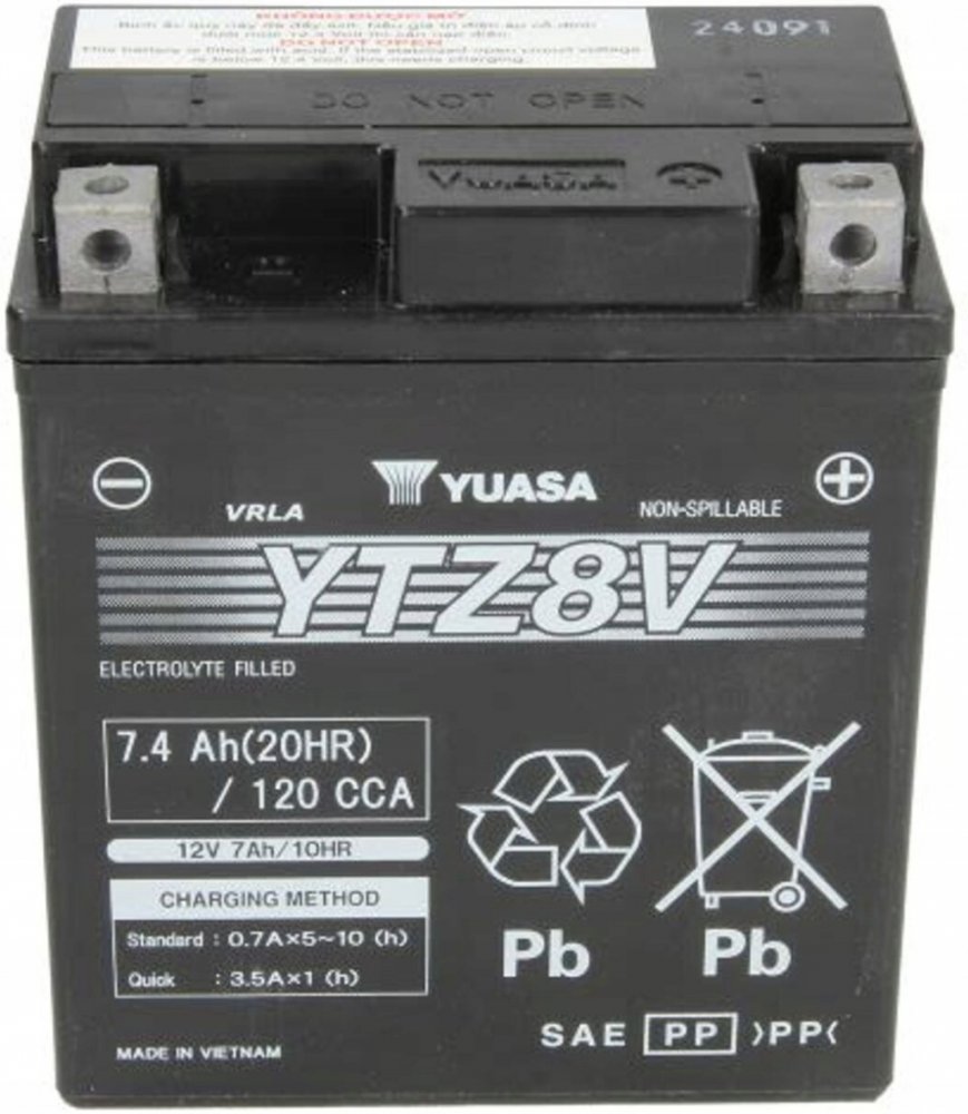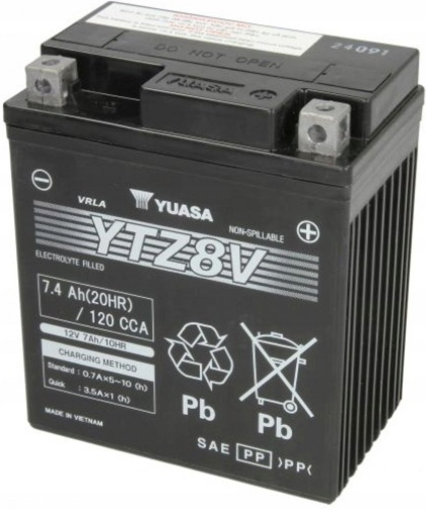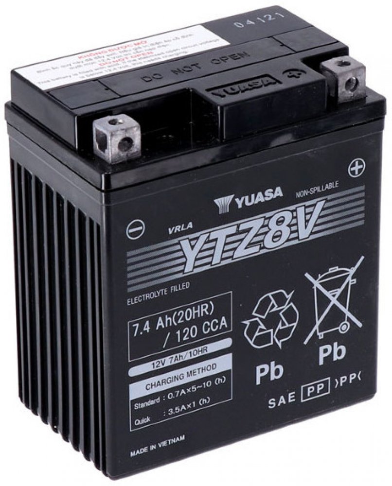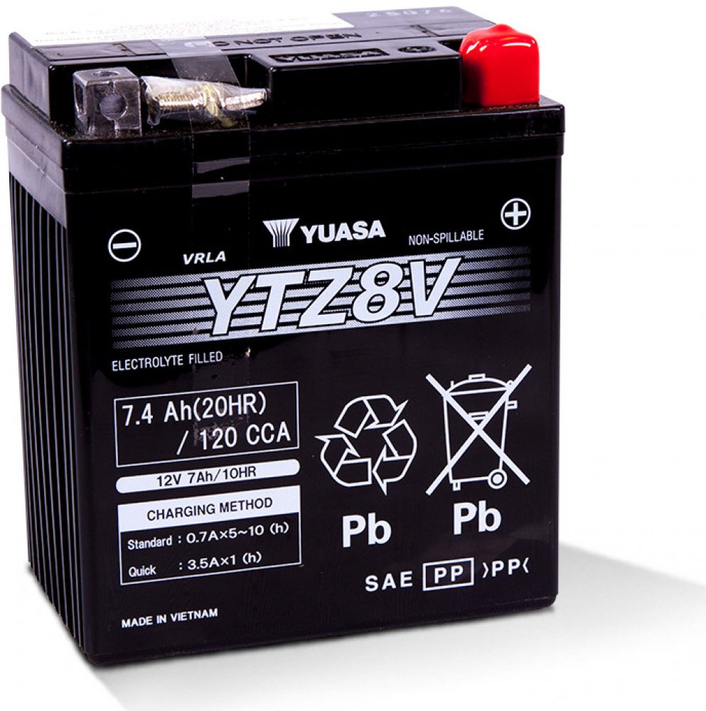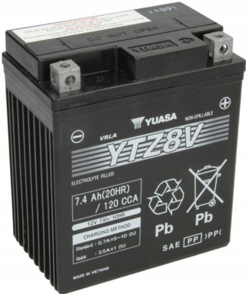 Jedná se o motobaterii VRLA (bezúdržbová ventilem řízená), vyráběnou společností YUASA. Je dodávána již aktivovaná z výroby (Factory Activated) a má o 30% vyšší startovací výkon než ostatní běžné baterie. Tento bezúdržbový akumulátor nevyžaduje kontrolu hladinu elektrolytu, je však nutné jej periodicky dobíjet. Předejdete tím hlubokému vybití baterie při méně častých jízdách a hlavn...