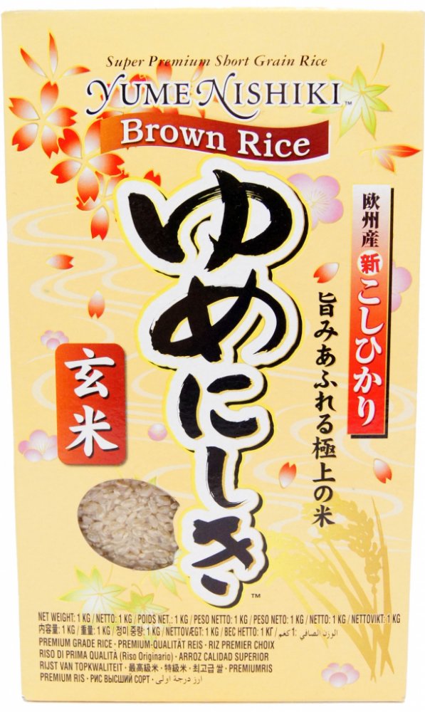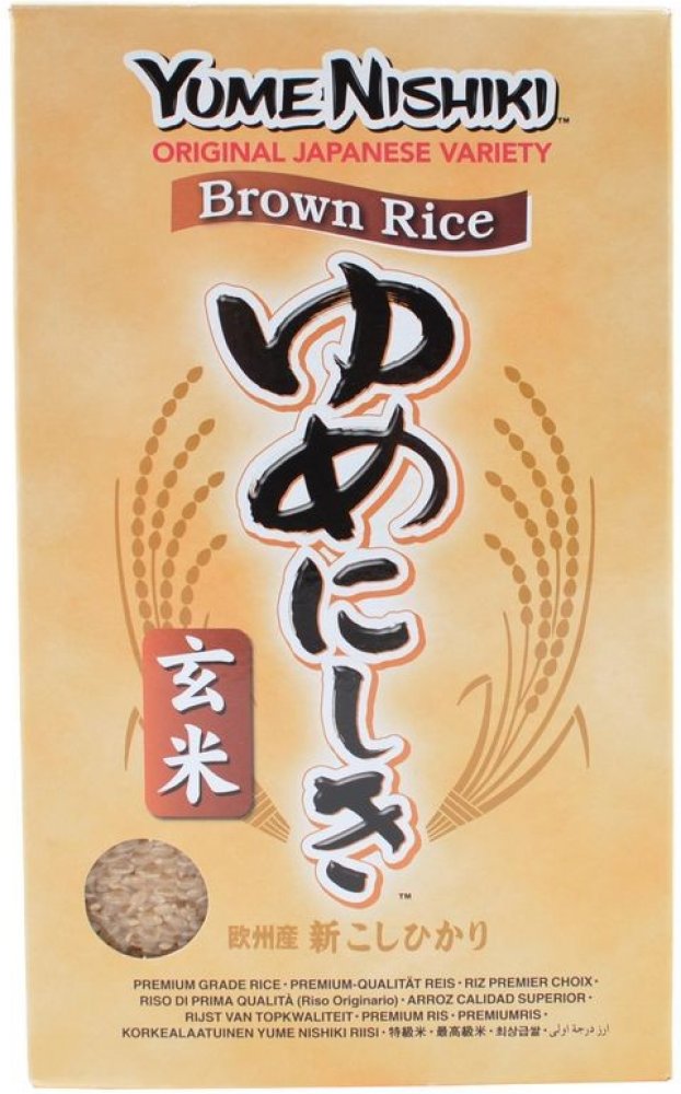 Hnědá rýže yume nishiki je vhodná pro výrobu rýžových pokrmů a jako příloha. Jeden hrnek vařené rýže obsahuje pouze 150 kalorií, takže je tato rýže vhodná i při redukčních dietách. Rýže je balená v praktických 500 g vakuových, igelitových pytlících.