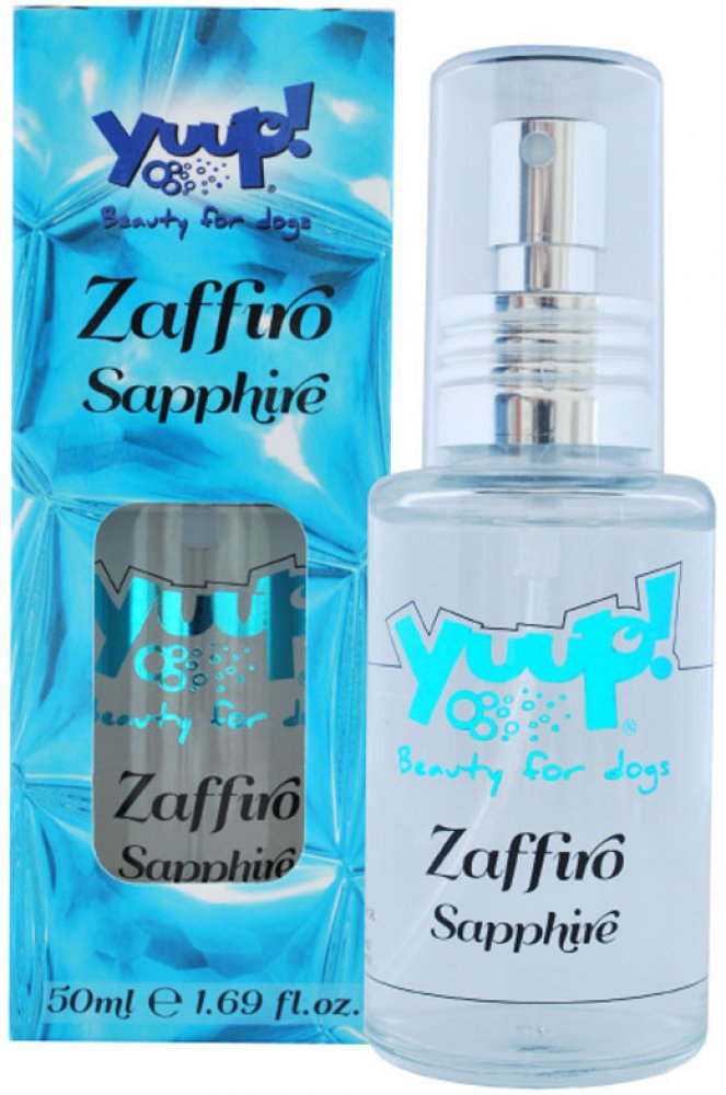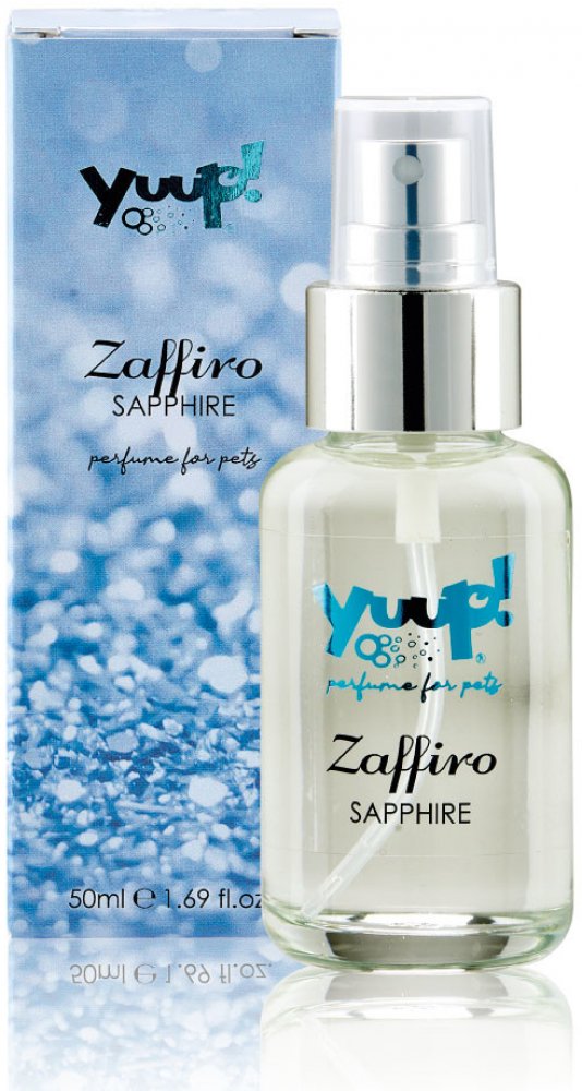 Yuup! Psí parfém Zaffiro Yuup! Dog Perfume je nádherná, dlouhotrvající vůně pro vašeho psa, takže váš čtyřnohý přítel bude vonět svěže po dlouhou dobu. Parfém byl vyvinut speciálně pro psy, a proto je pro vašeho mazlíčka zcela bezpečný. Parfém neobsahuje alkohol Specifikace: Parfém je určen pro psy: Obsah: 50 ml Rozměry: 12 x 4 cm (v x š) Parfém SAPPHIRE Yuup 50ml Šumivá, elegantní a dlouhotrvající vůně v kombinaci s radostnou a spontání explozi citrusových tónů grapefruitu a vetiveru. Obsahuje alkohol. Návod k použití Nastříkejte lehce a rovnoměrně na srst.