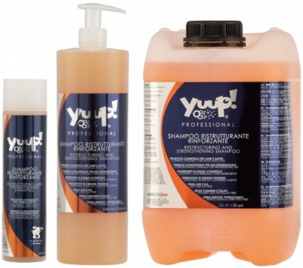 Restrukturalizační a posilující šampon pro psy Yuup obsahuje mírné čistící prostředky z rostlinných zdrojů, které jsou ideální pro všechny typy srsti a zvláště indikované k restrukturalizaci a posílení nejvíce poškozené a zanedbávané s nedostatkem měkkosti, přirozeného lesku a vitality.