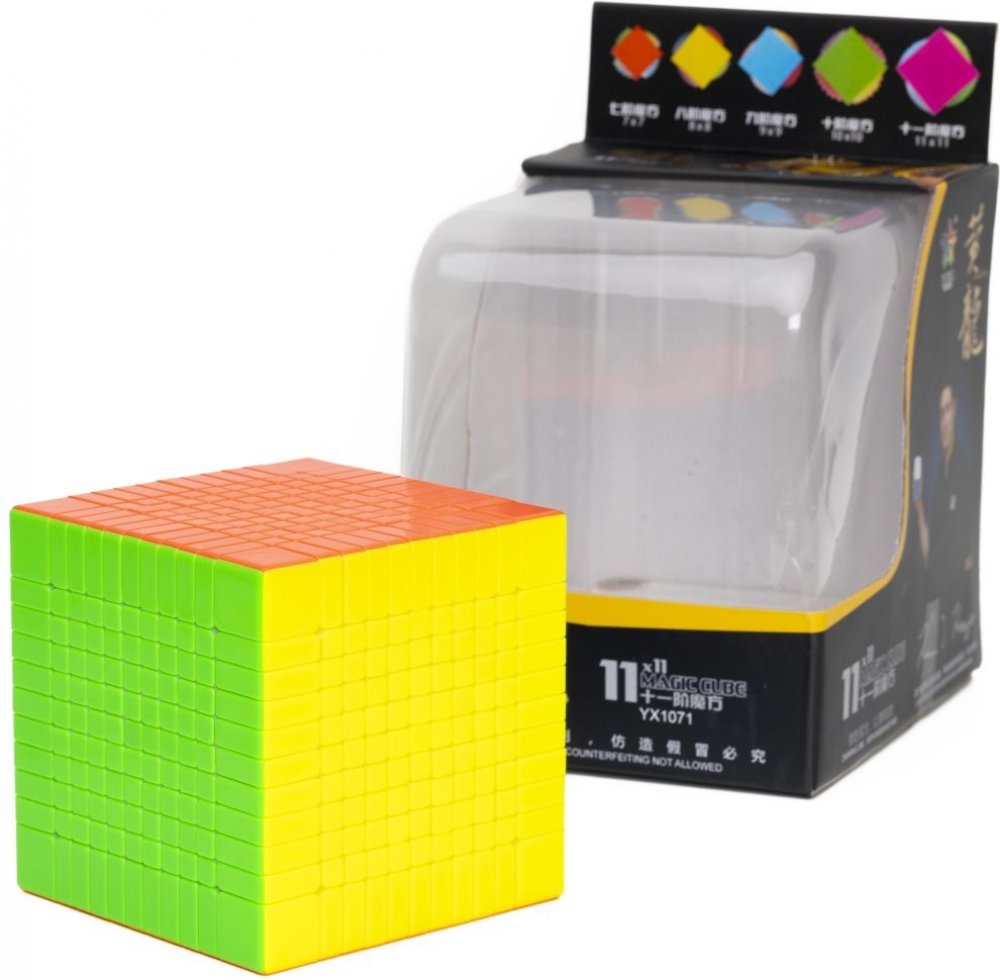 Představujeme kvalitní kostku 11x11x11 Huanglong od výrobce Yuxin. S kostkou se i přes její velikost otáčí snadno a plynule. S touto velikostí kostky se už oficiálně nezávodí. Kostku doporučujeme pro fanoušky kostek a hlavolamů, kteří umí složit kostku 7x7x7 a chtějí pokořit další výzvu.