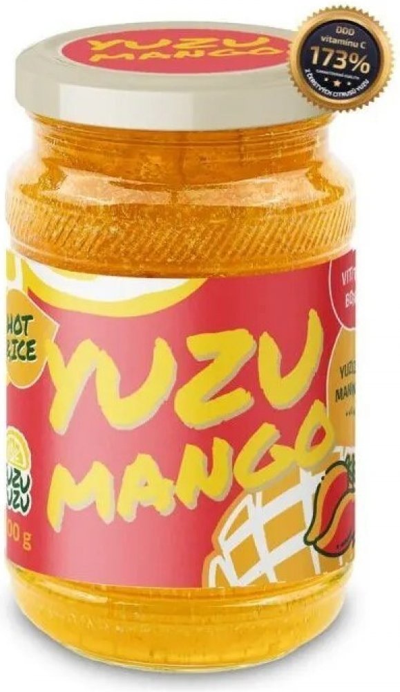 Citrusové plody yuzu 20 %, Mango dužnina 15 %, med 5 %, vitamin C 395 mg