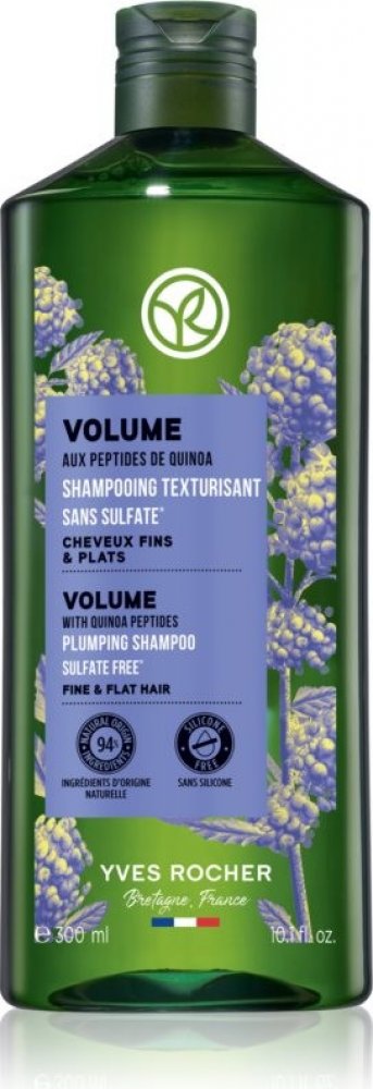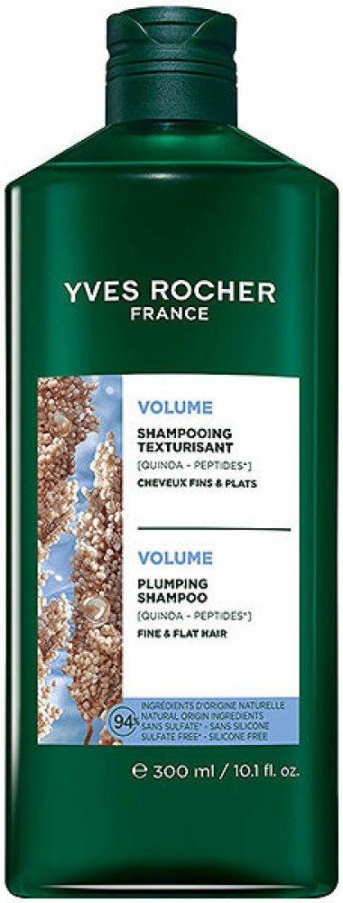 Yves Rocher Šampon pro větší objem vlasů 300 ml Viditelnější objem vlasů. Výtažek z agáve podporuje mikrocirkulaci, která zajištuje dokonalou výživu vlasového kořínku. Díky výtažku z quinoy získají vlasy viditelnější objem.